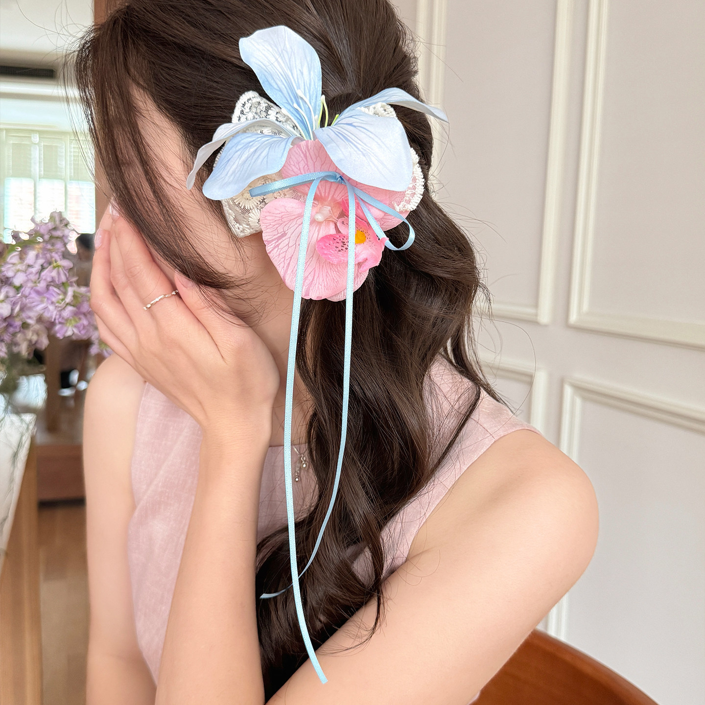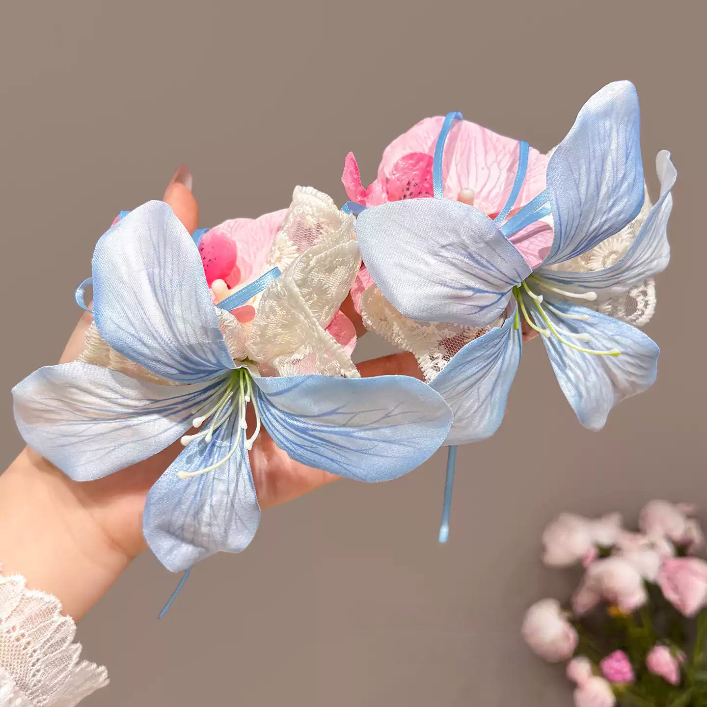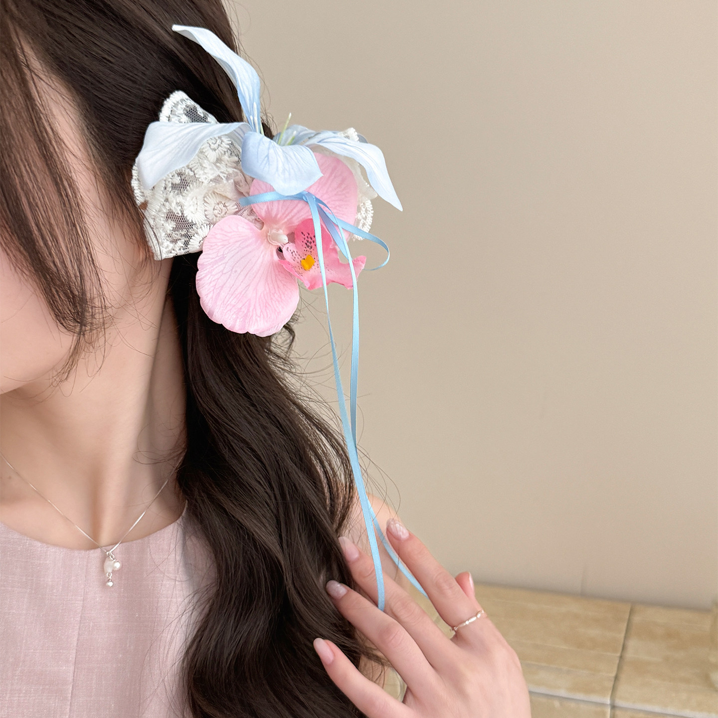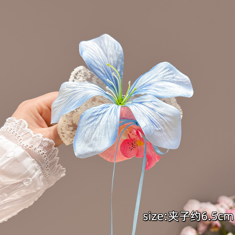 color: blue pink flowers barrettes