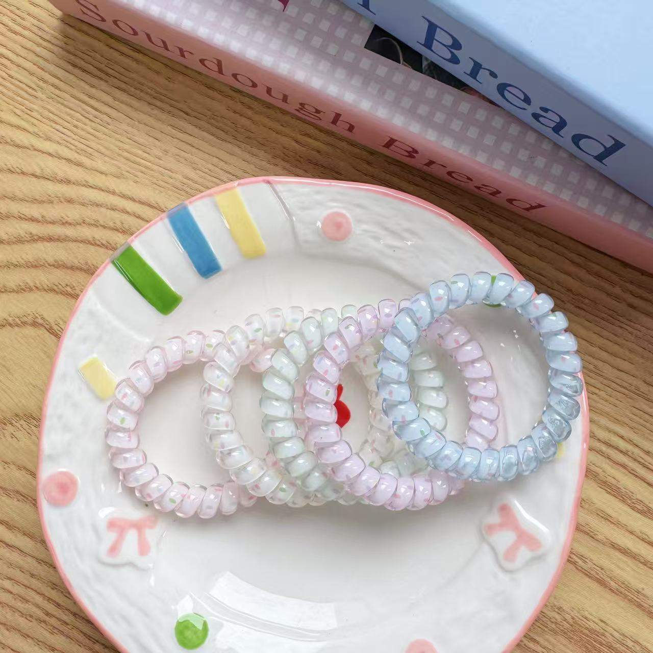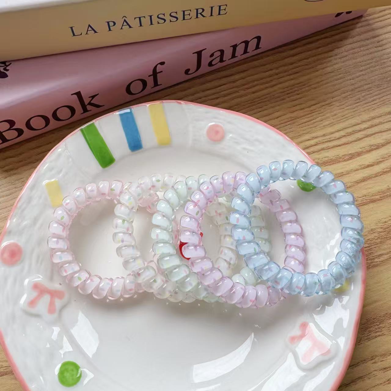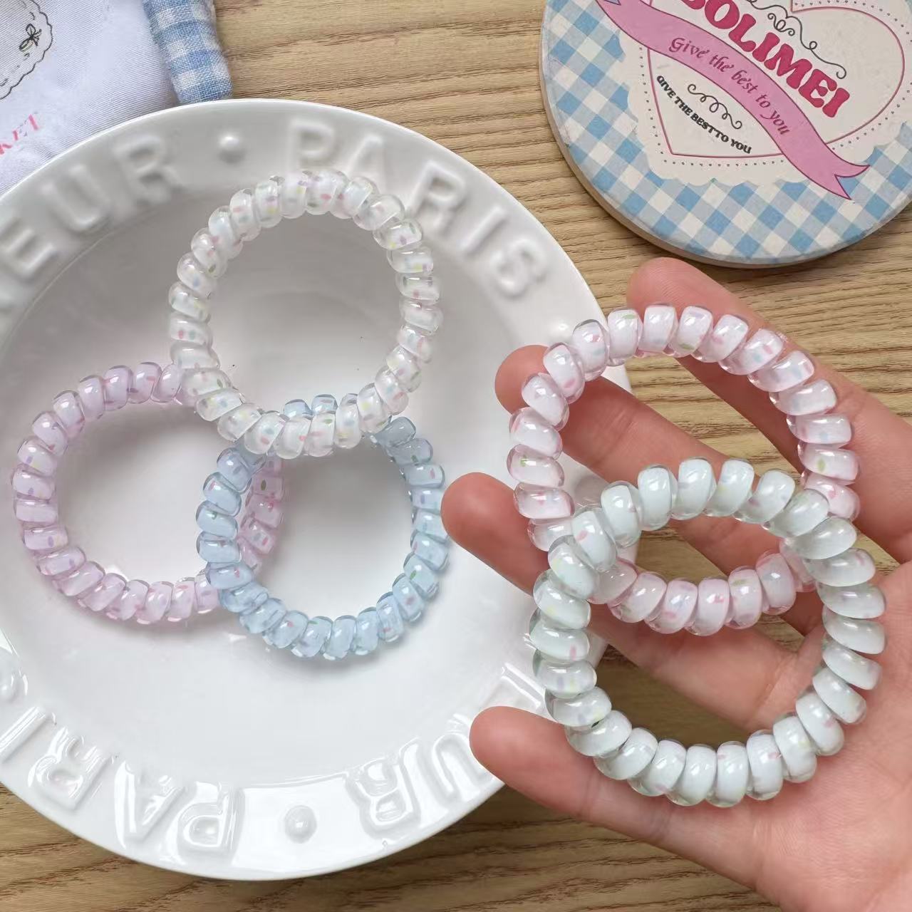 polka dot phone line hair ring [green]