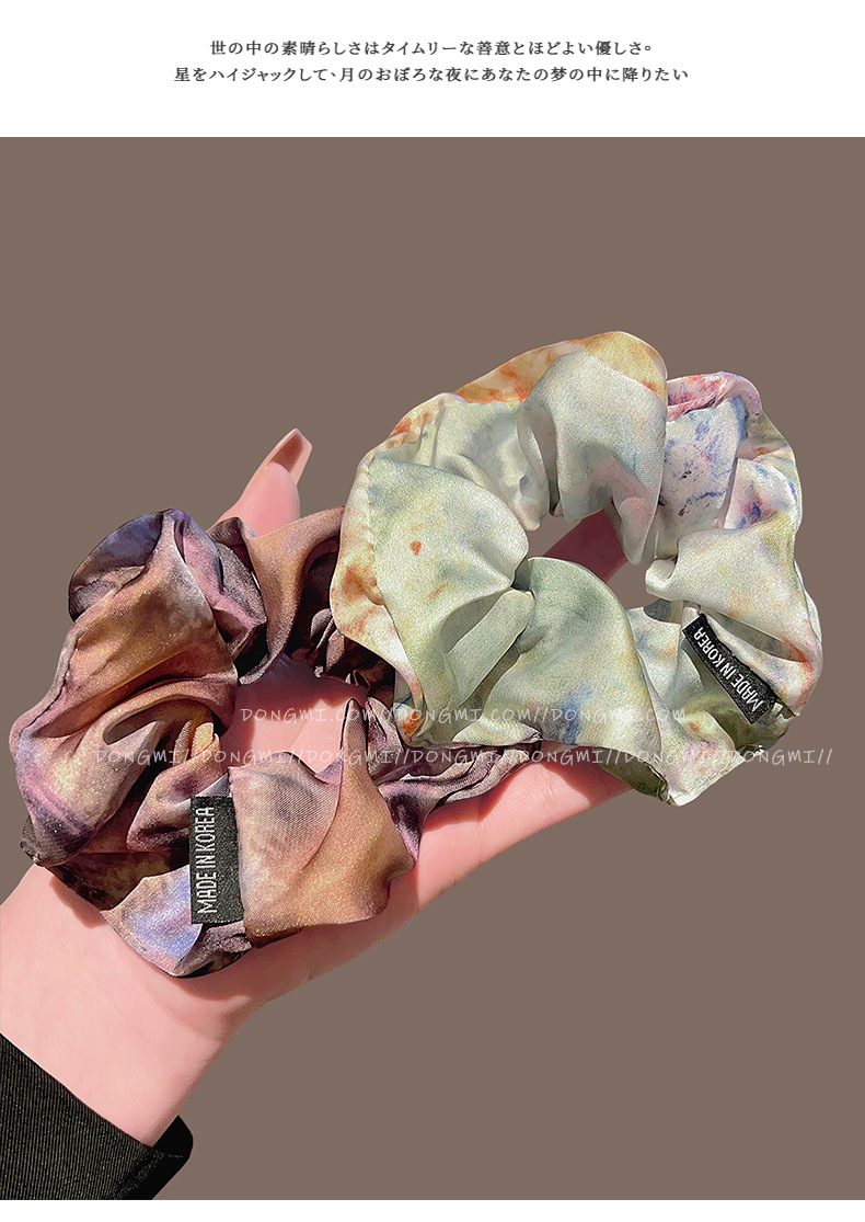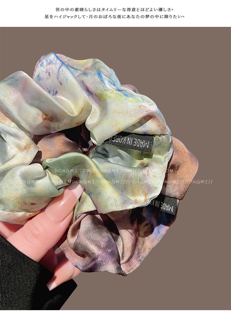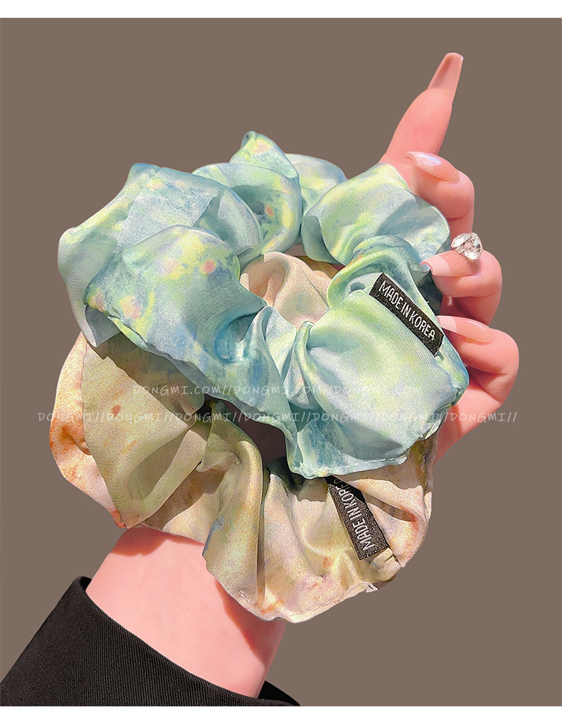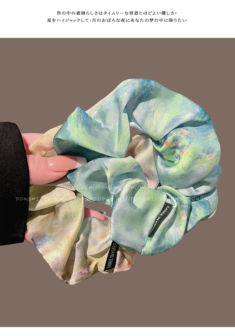 colored silk satin oil painting large hair tie