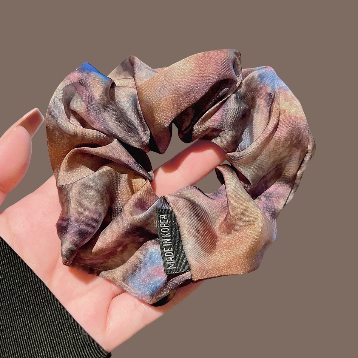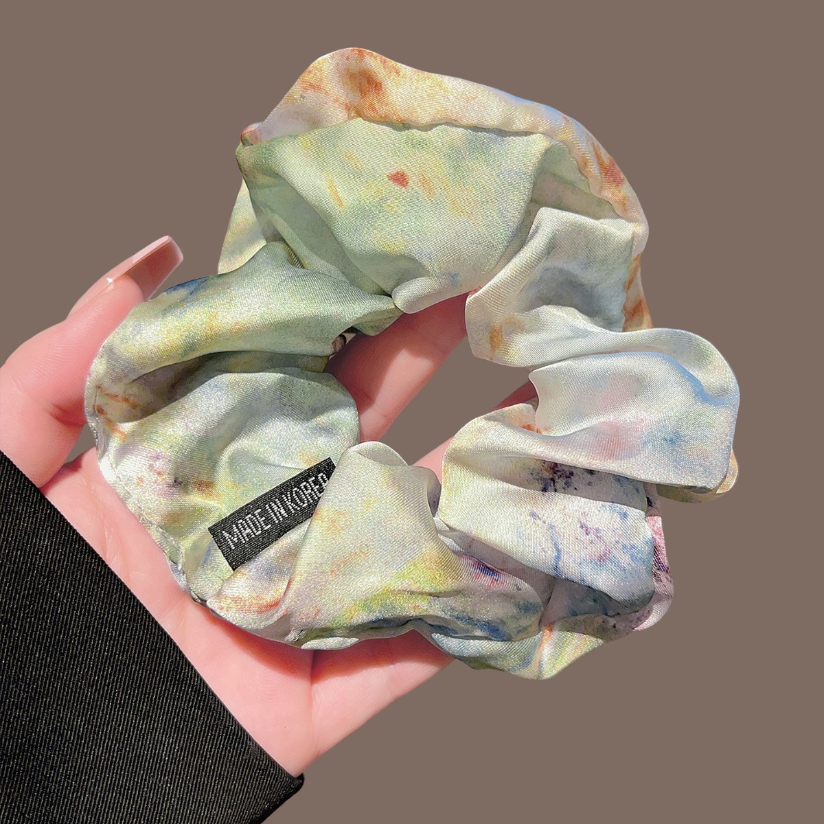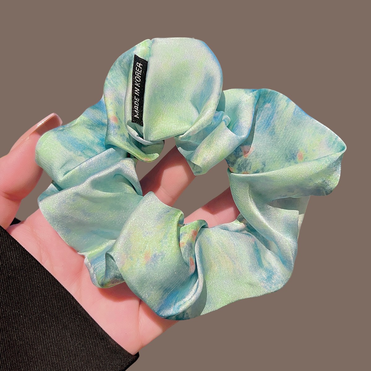 colored silk satin oil painting large hair tie