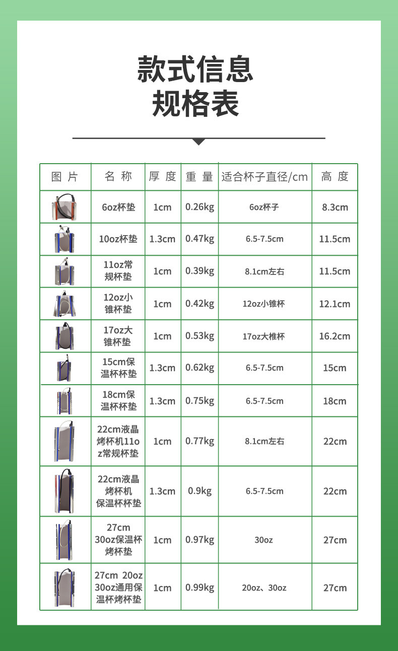 | 27cm 20oz 30oz universal baking cup mat | CN¥ 180.0 |