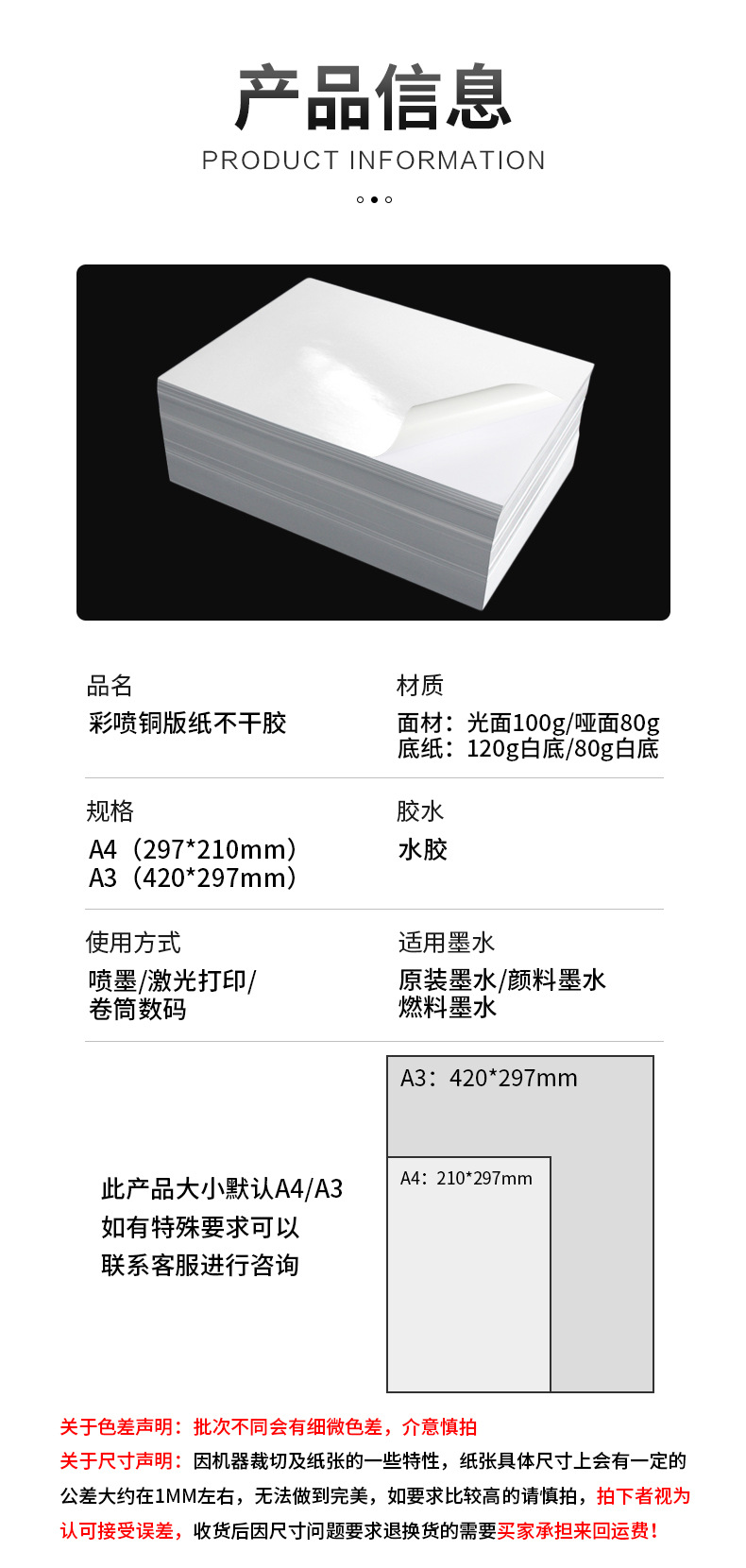 matte color spray coated paper/water glue/120 g white back; a4 (210*297 mm)