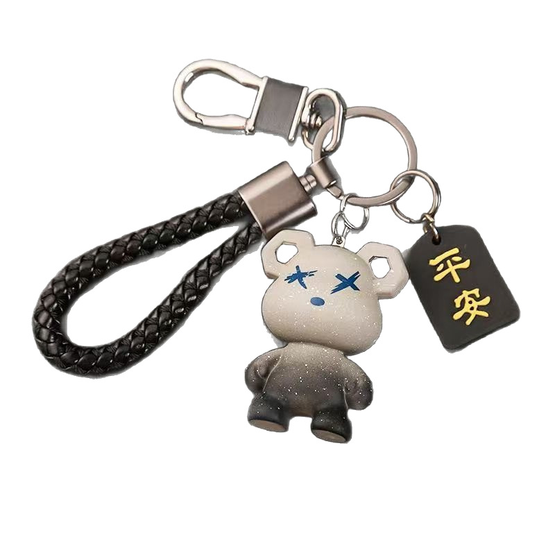 [gray starry sky bear] + black rope + safety-blessing card