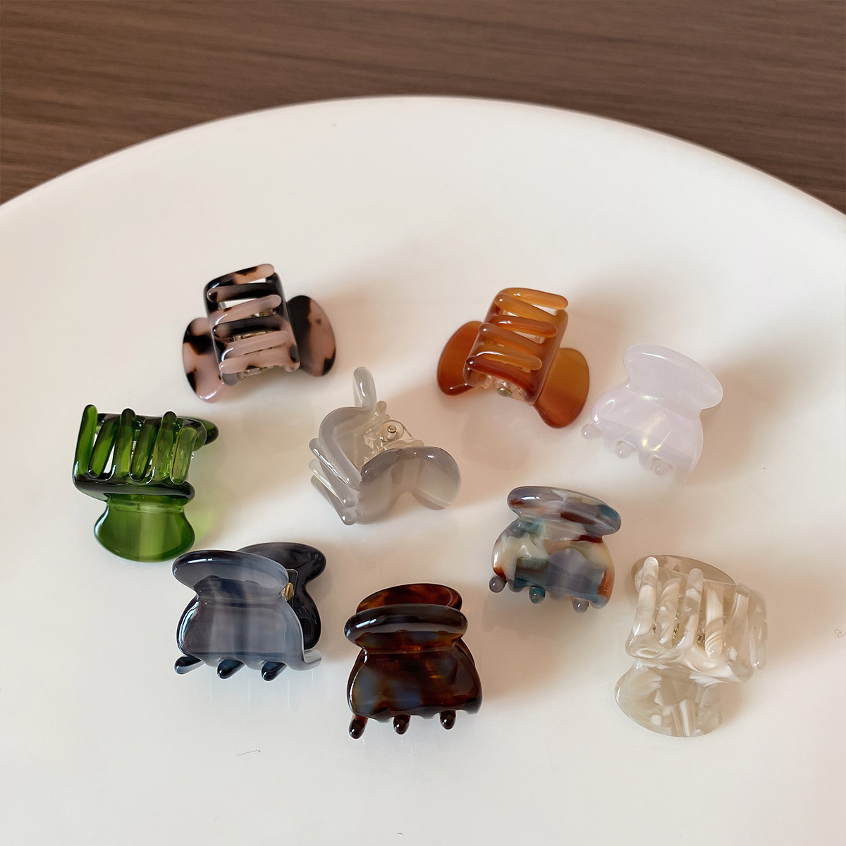 marble-patterned barrettes