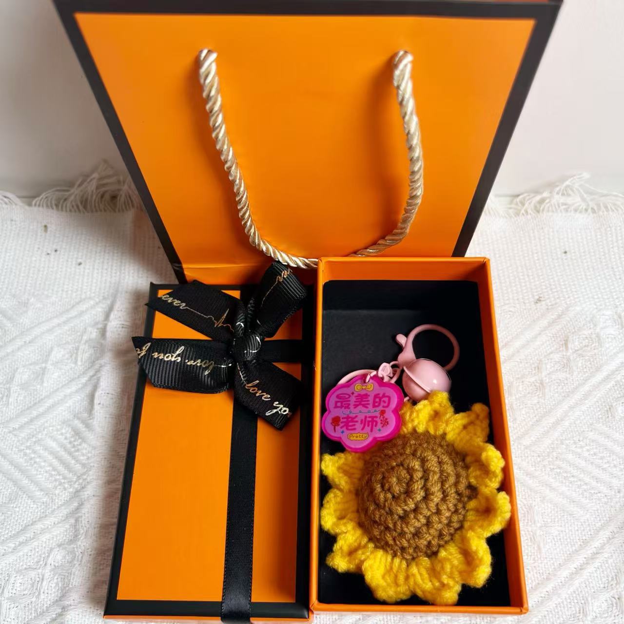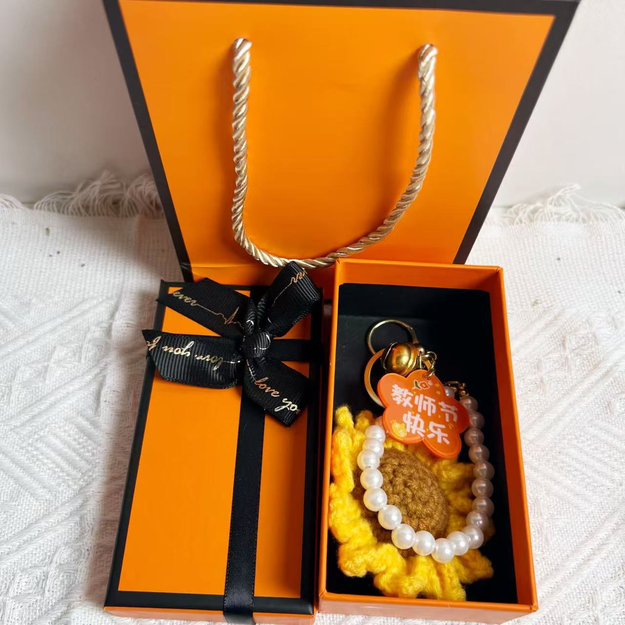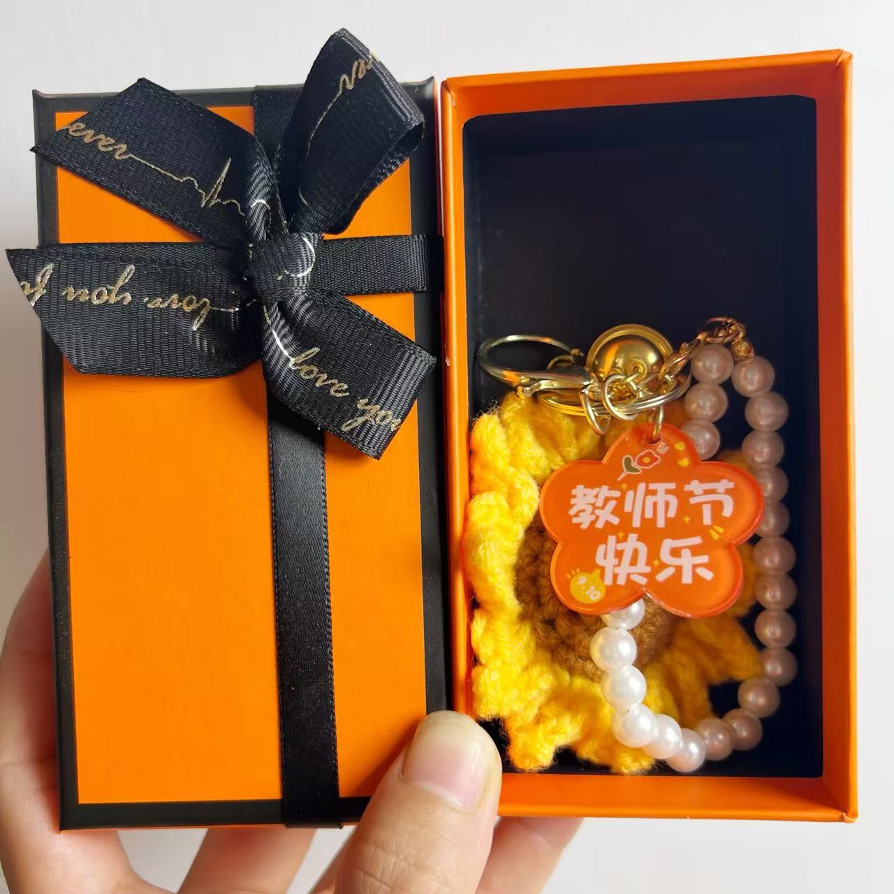 [happy teacher’s day] keychain with flower-shaped plate + gift box + gift bag