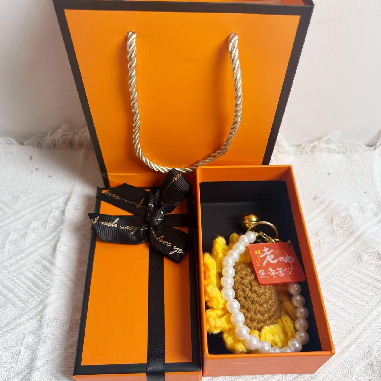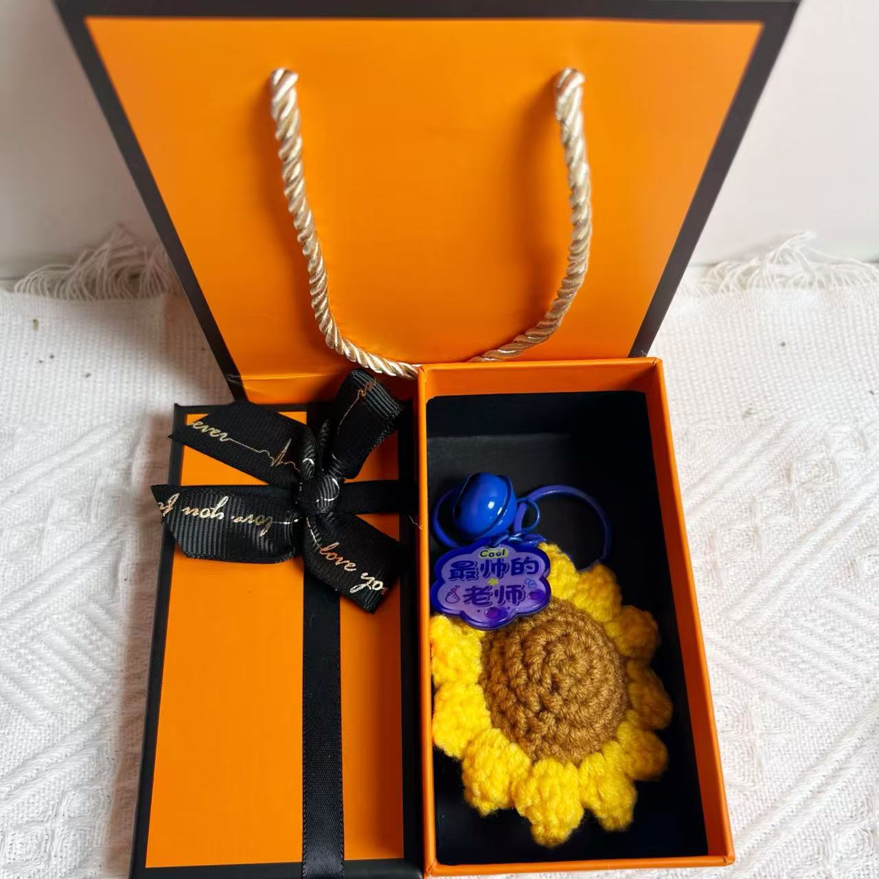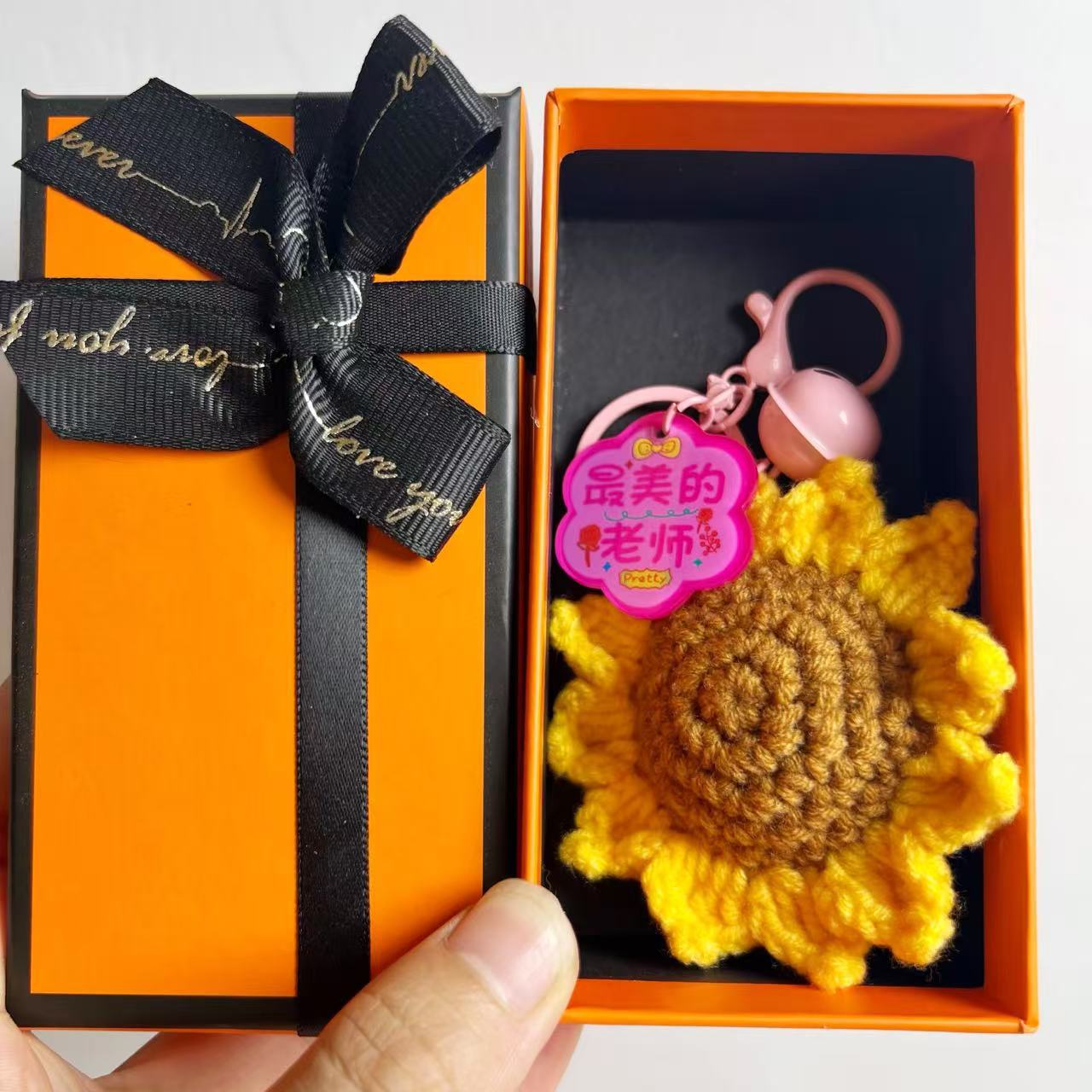 [happy teacher’s day] keychain with flower-shaped plate + gift box + gift bag