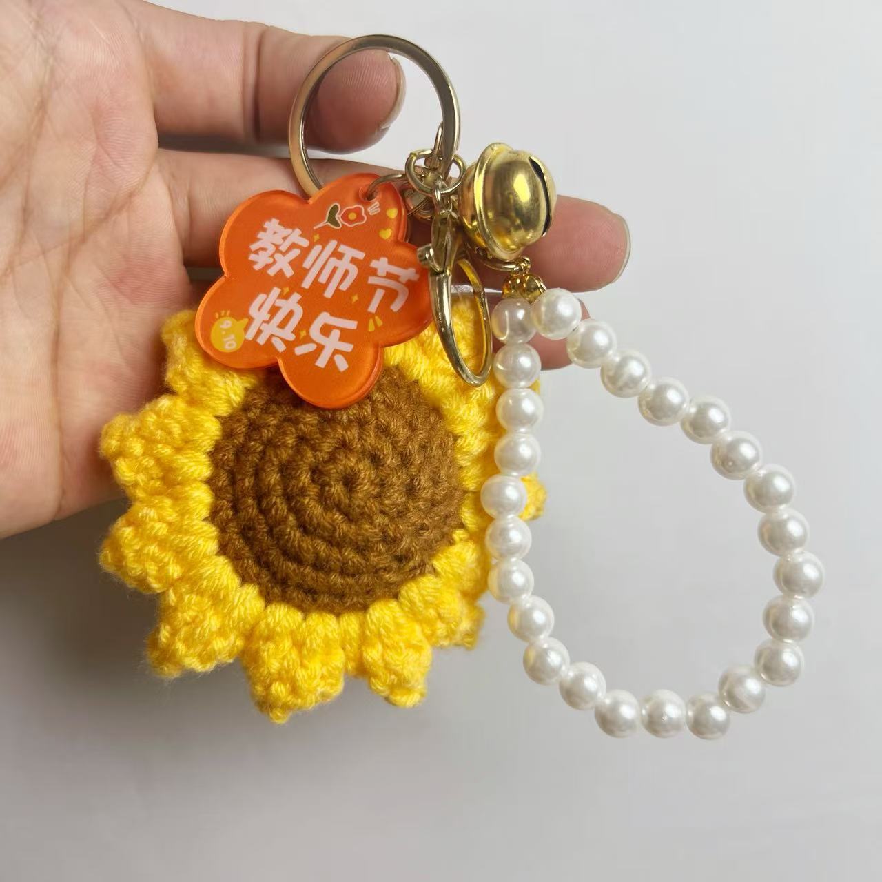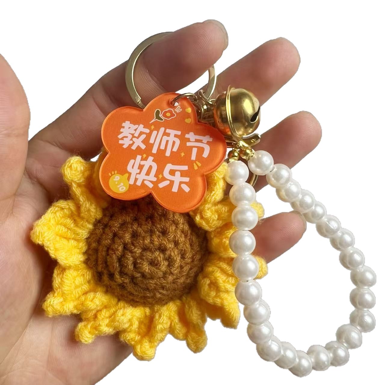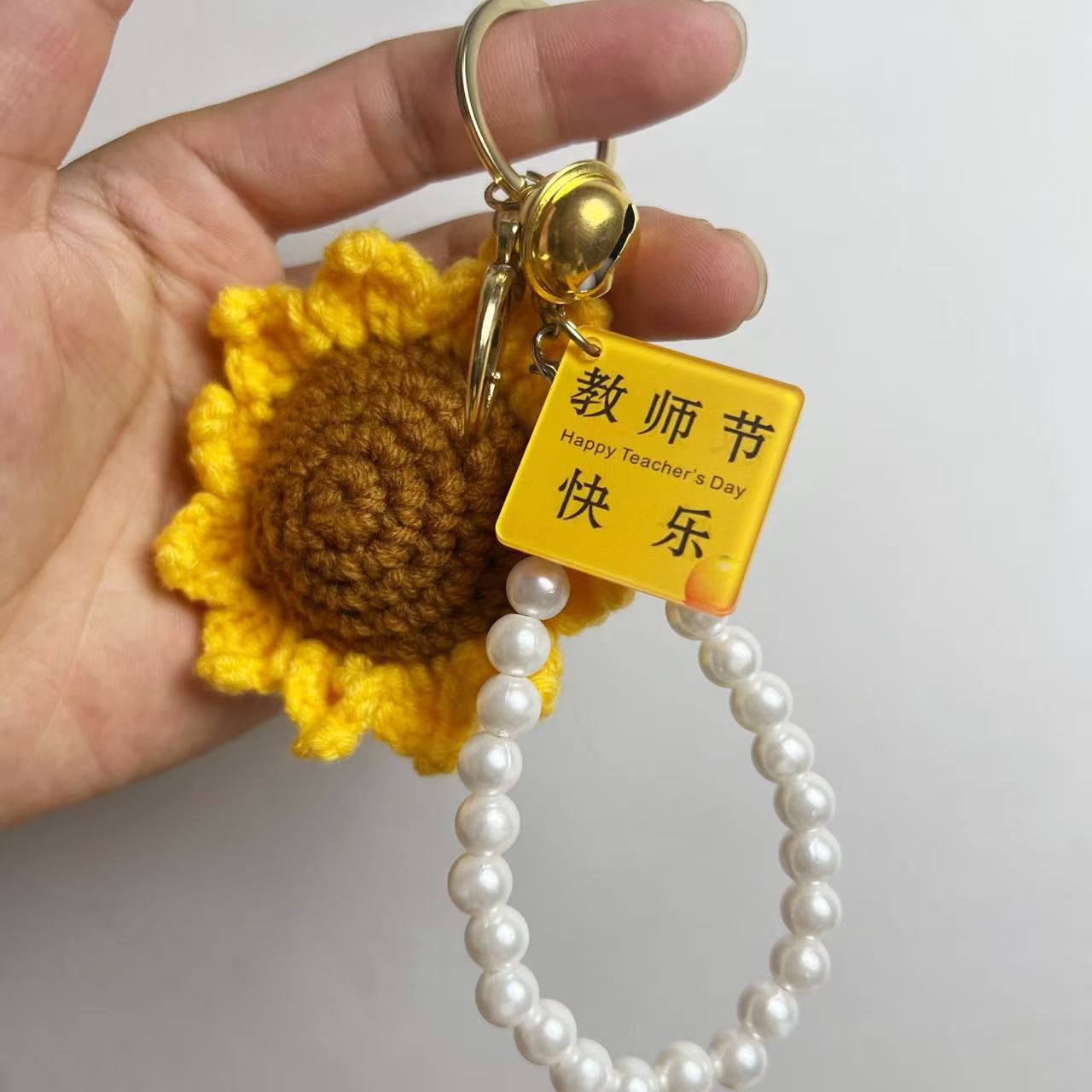[happy teacher’s day] keychain with flower-shaped plate