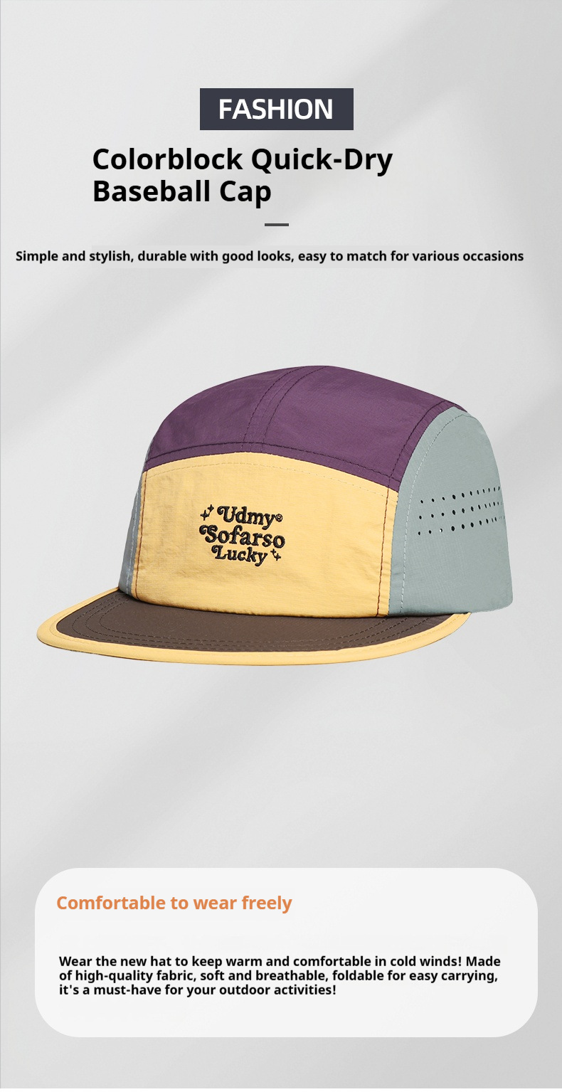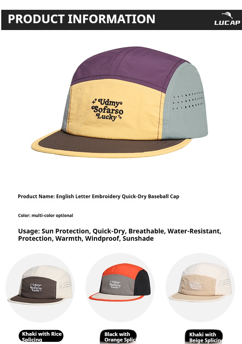 contrast color fast-drying thin baseball cap letter embroidery fashion outdoor sports flat brim breathable sun protection sun-poof peaked cap