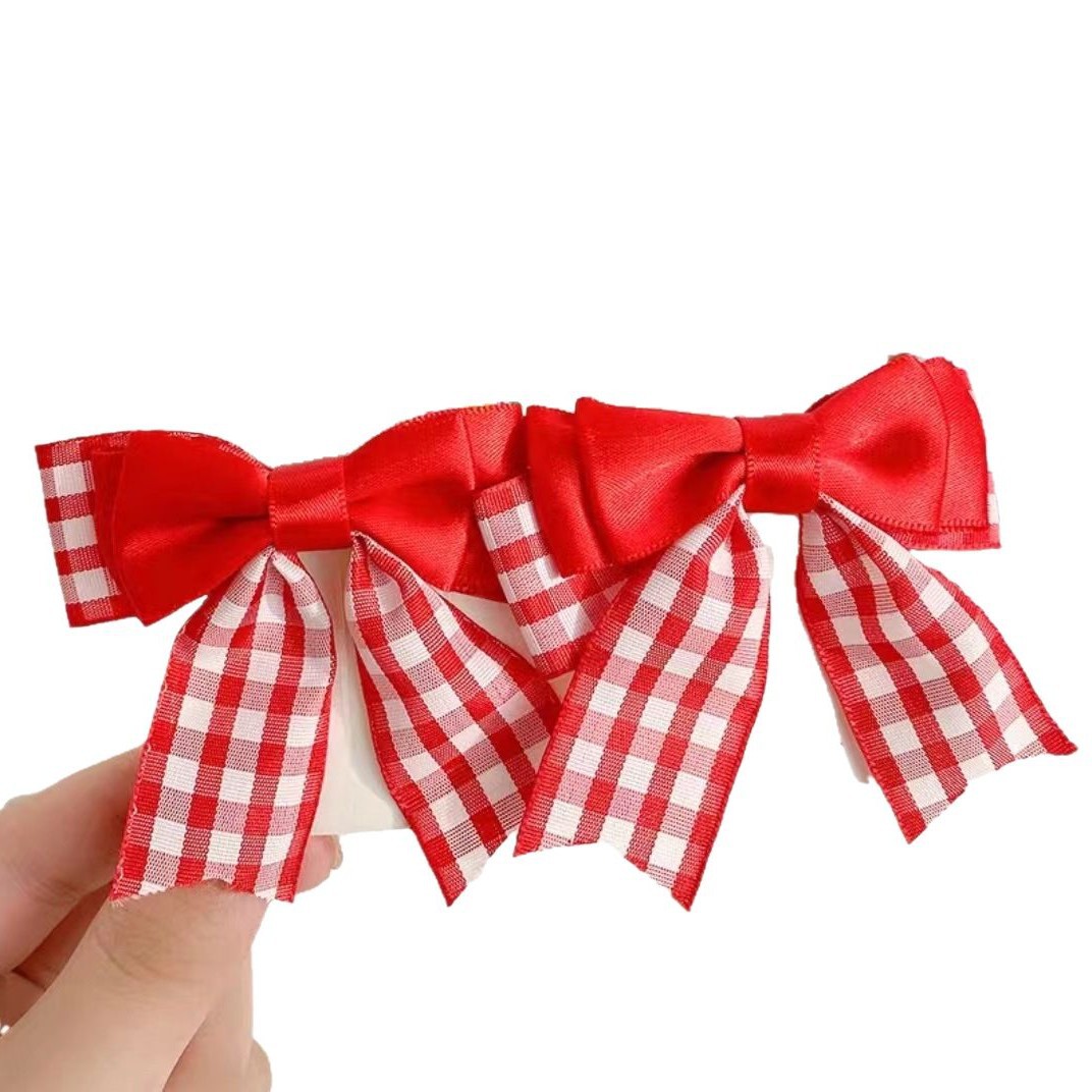 0712 red grid bow tie pair