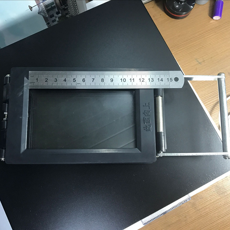 3)The sequence and orientation of the printout, the exposure film, and the photocopy stamp pad are as follows: the printout is on the top layer with the printing side facing down, the middle layer is the exposure film, and the third layer is the photocopy stamp pad. The three layers should be contact with each other smoothly and tightly, with no gaps or folds in the middle. Use a clamping device to press down firmly. If the clamping device is not tight enough, place 2 business cards under the photocopy stamp pad, which will improve the effect.