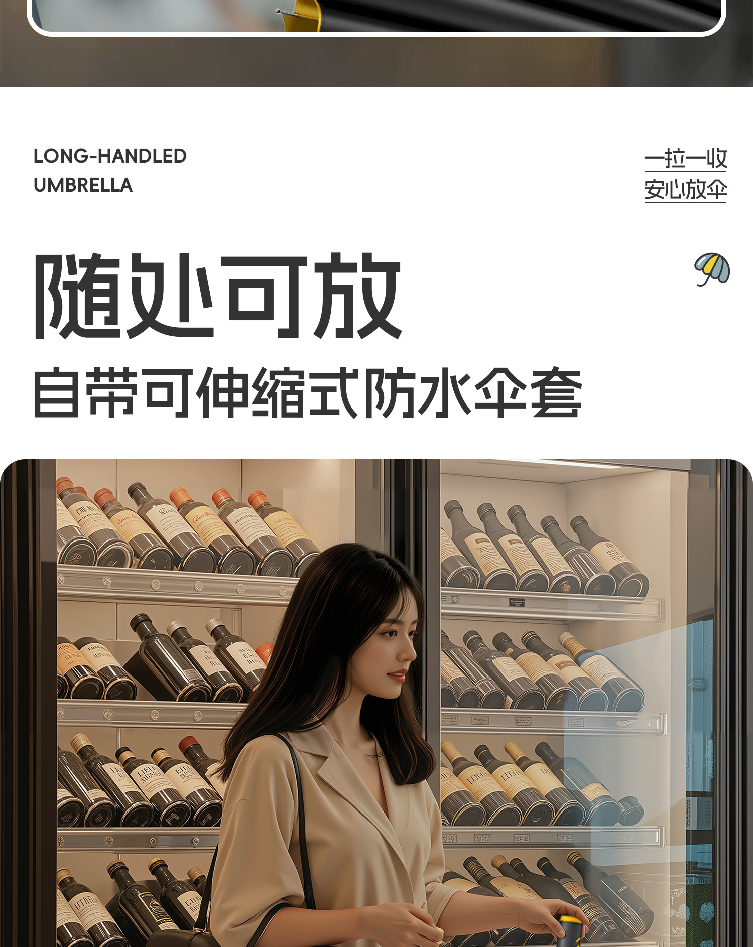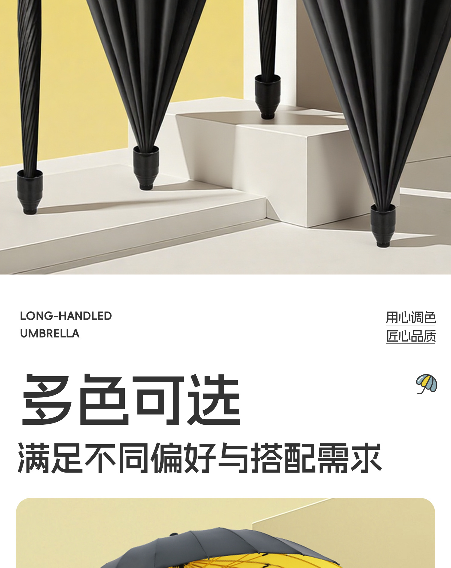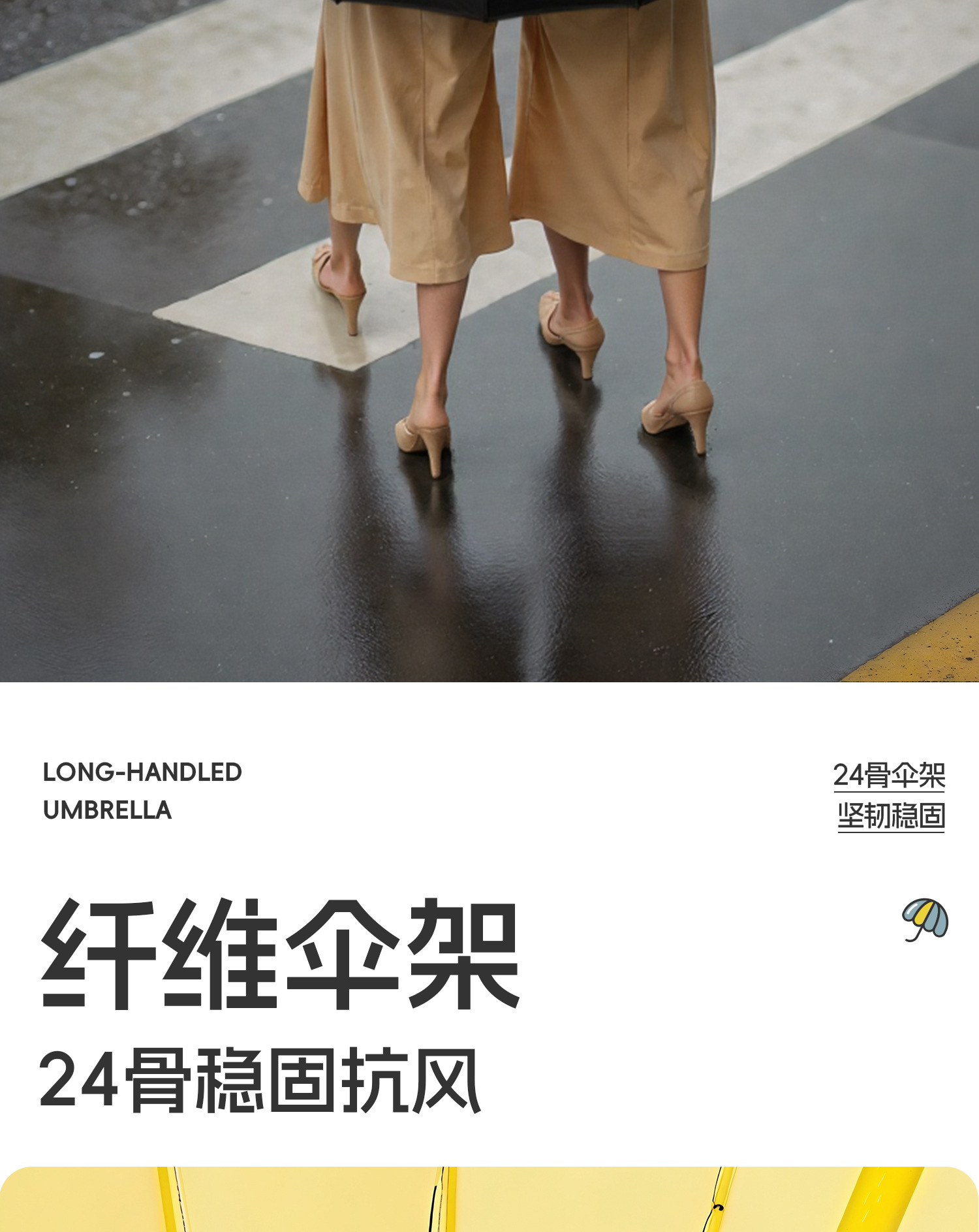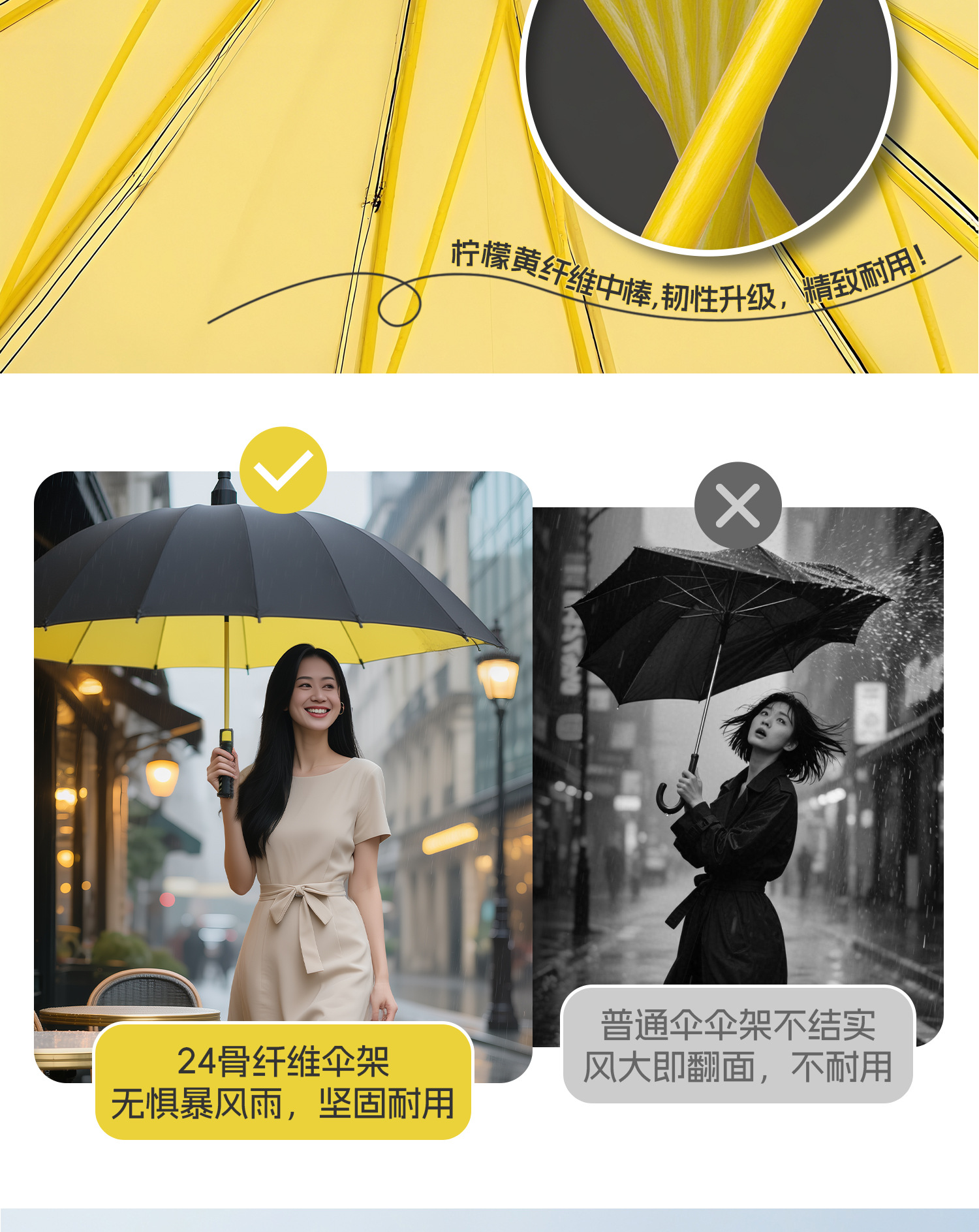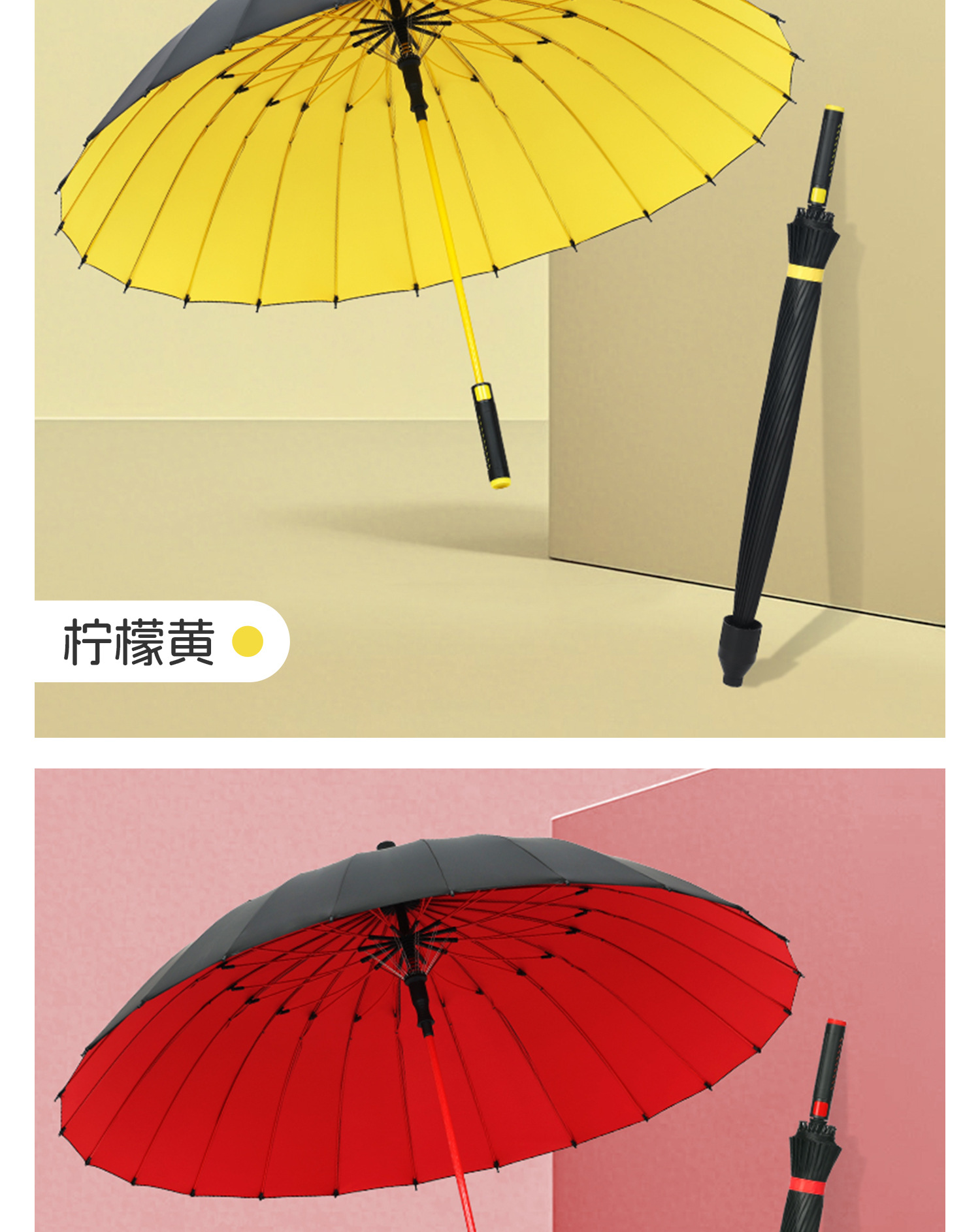 120cm big umbrella 24 ribs [bent handle-dry when closed] plus-sized thickened and reinforced-lemon yellow