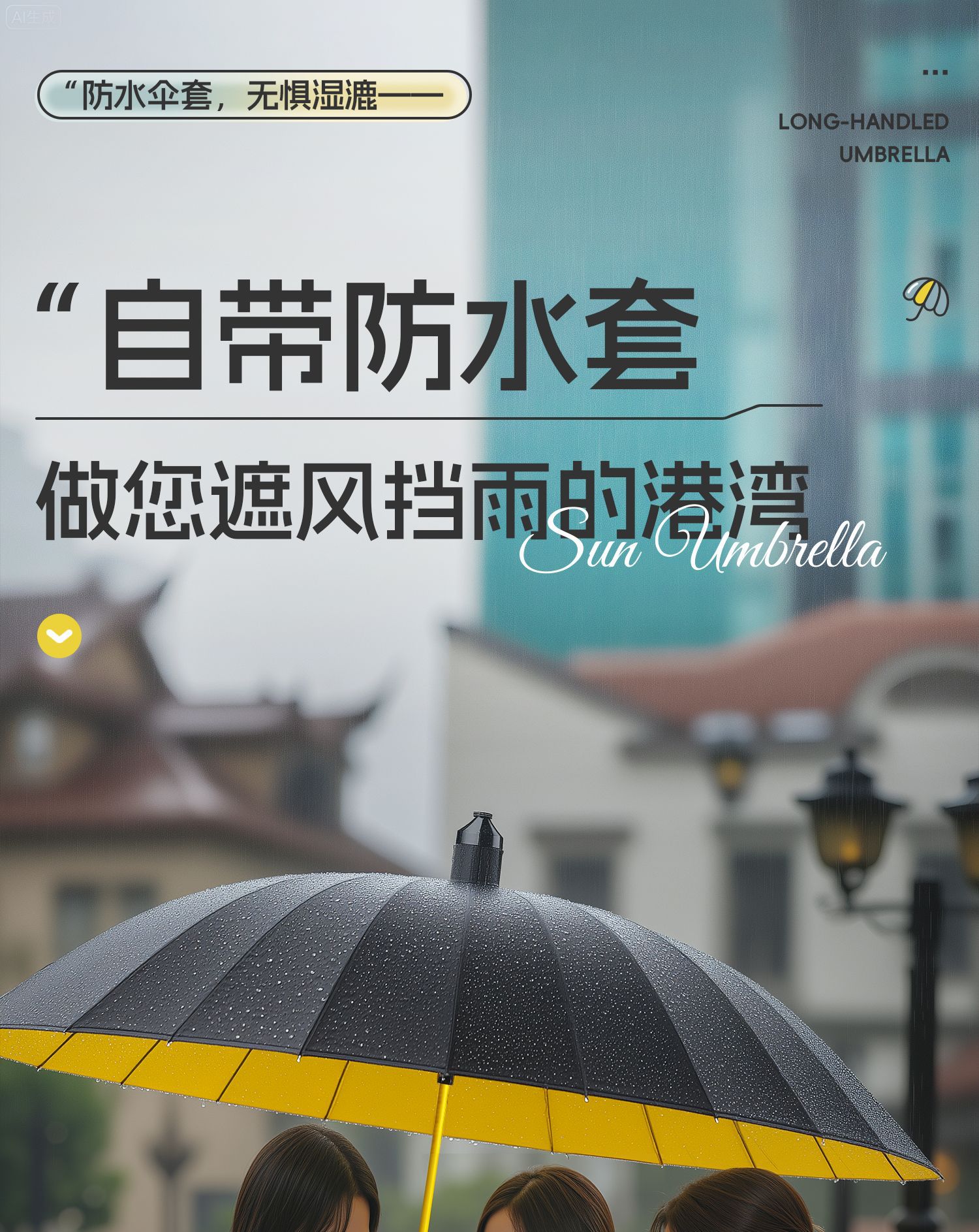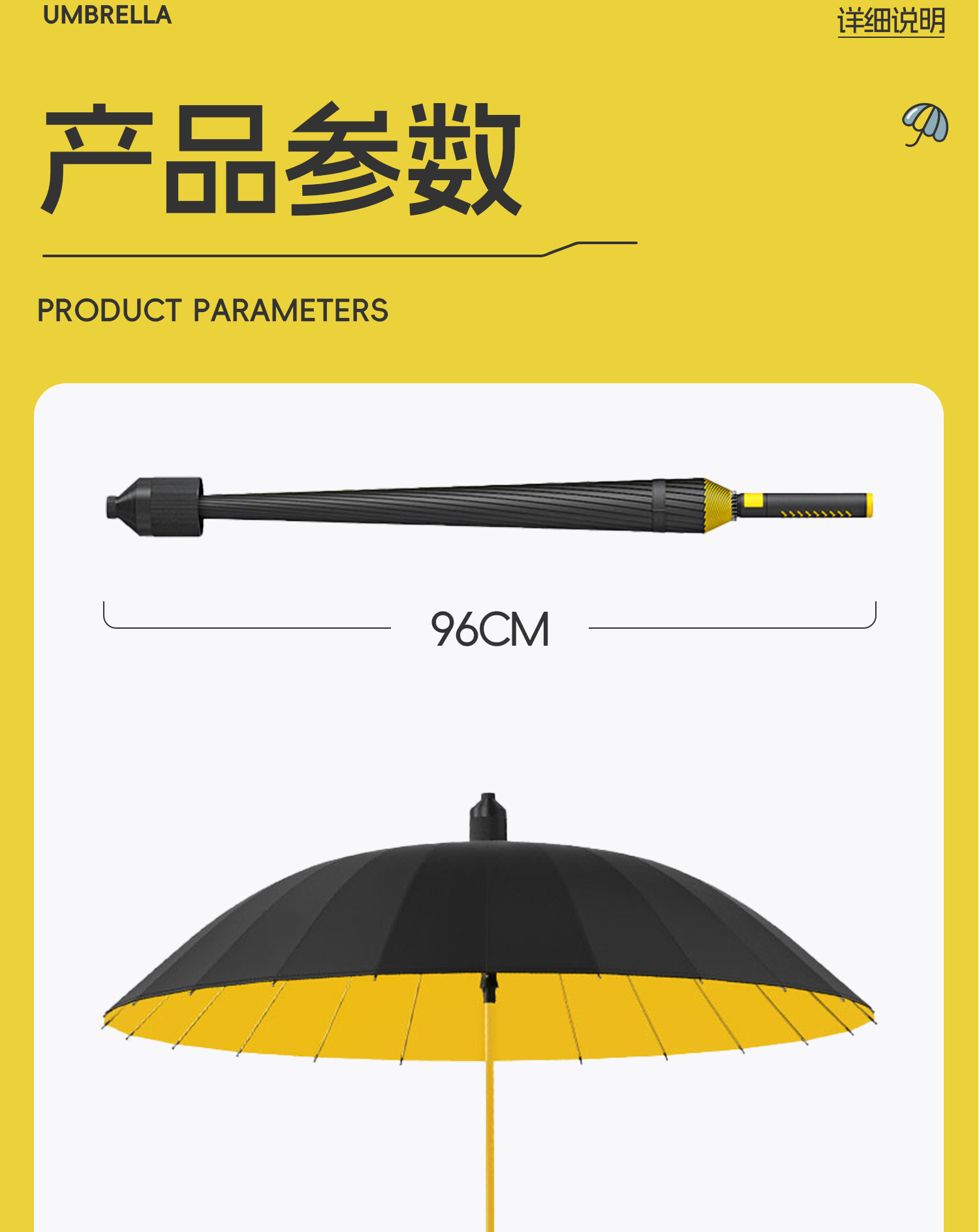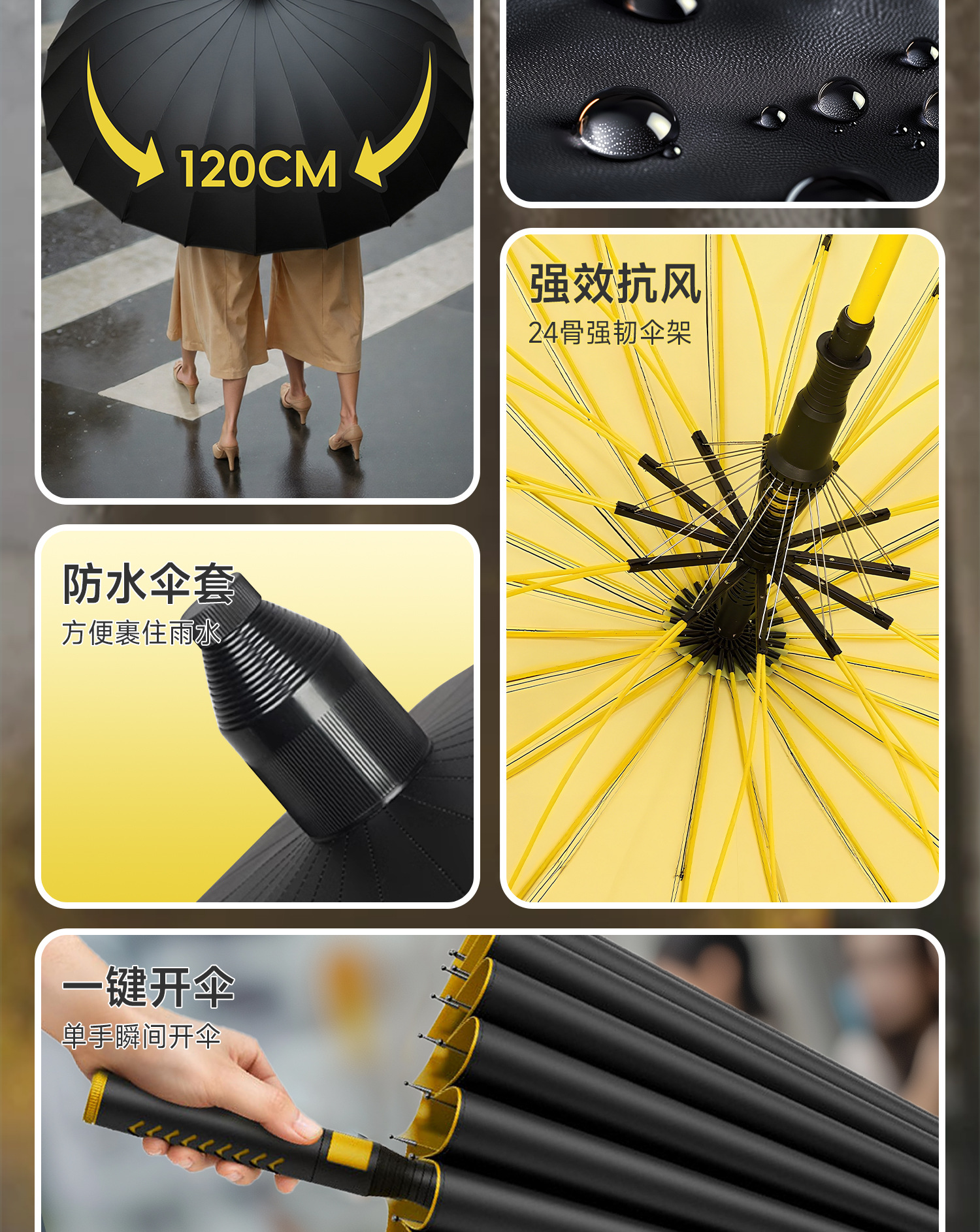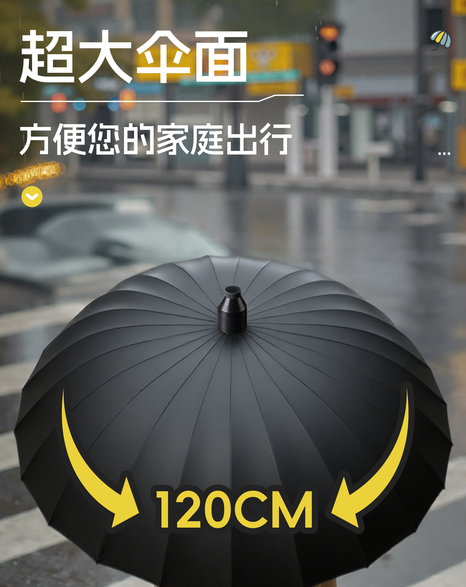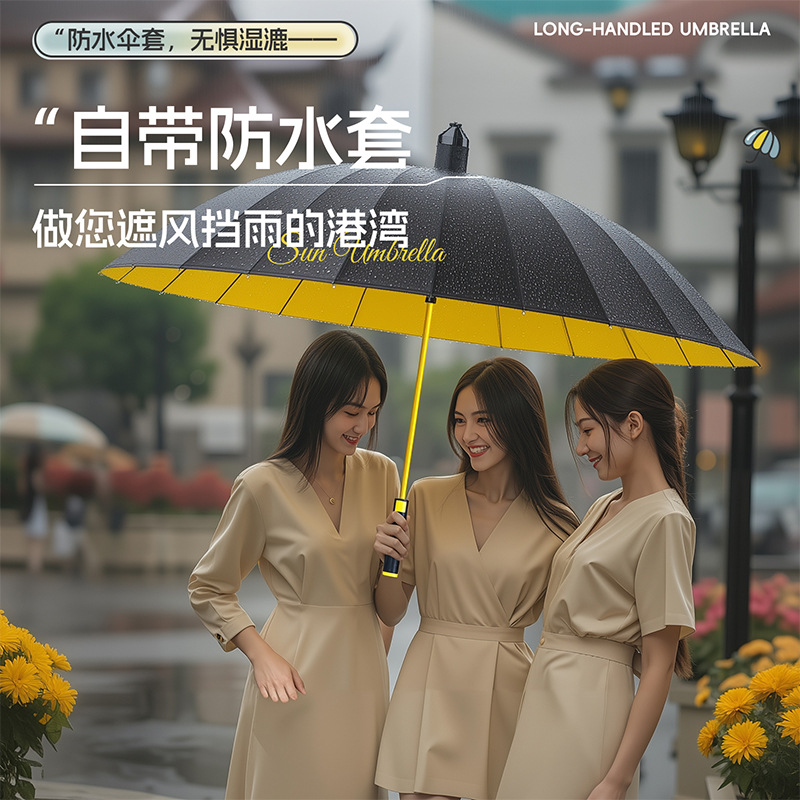 120cm big umbrella 24 ribs [straight handle-dry when closing] plus-sized thickened and reinforced-lemon yellow