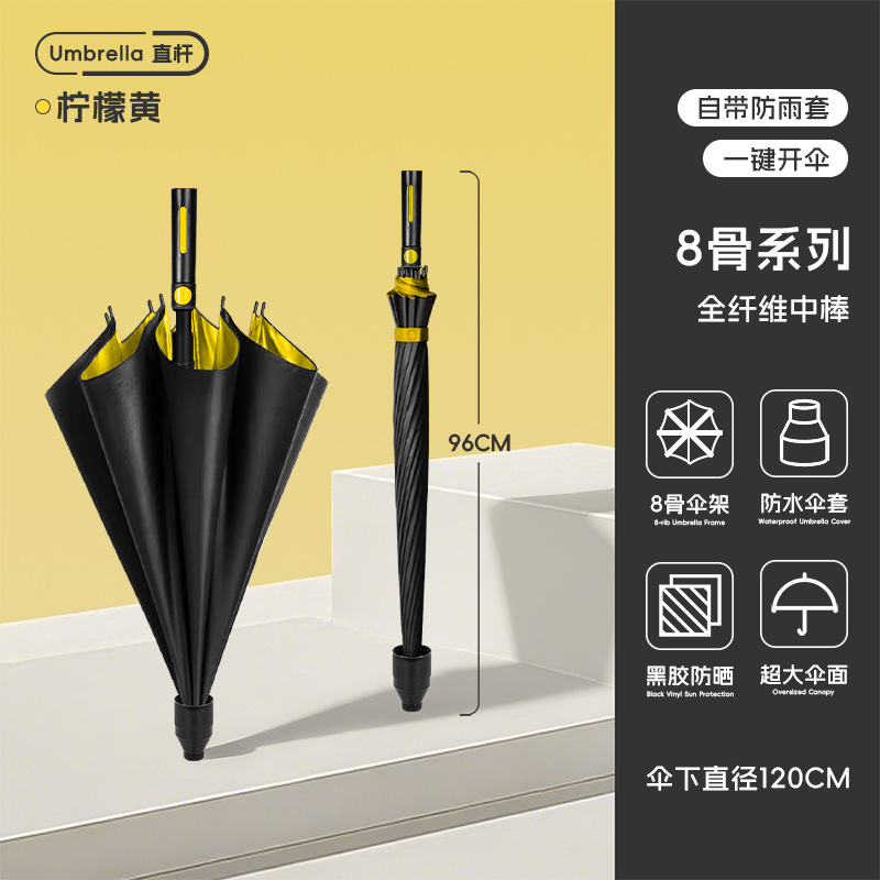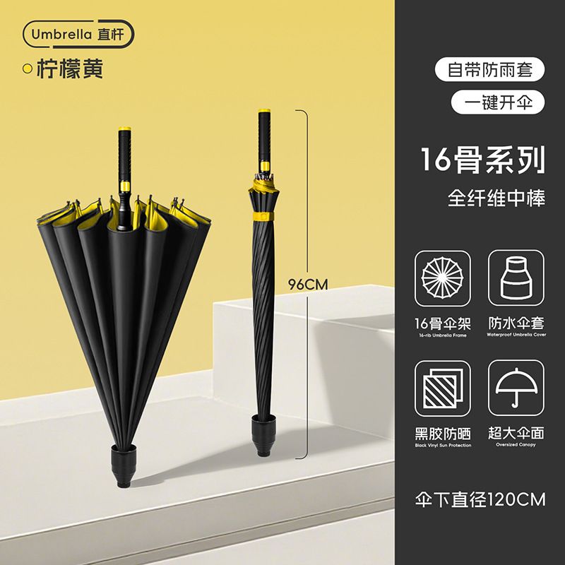 120cm umbrella automatic large size 16-rib [straight handle-dry after closing] plus-sized thickened reinforced-lemon yellow