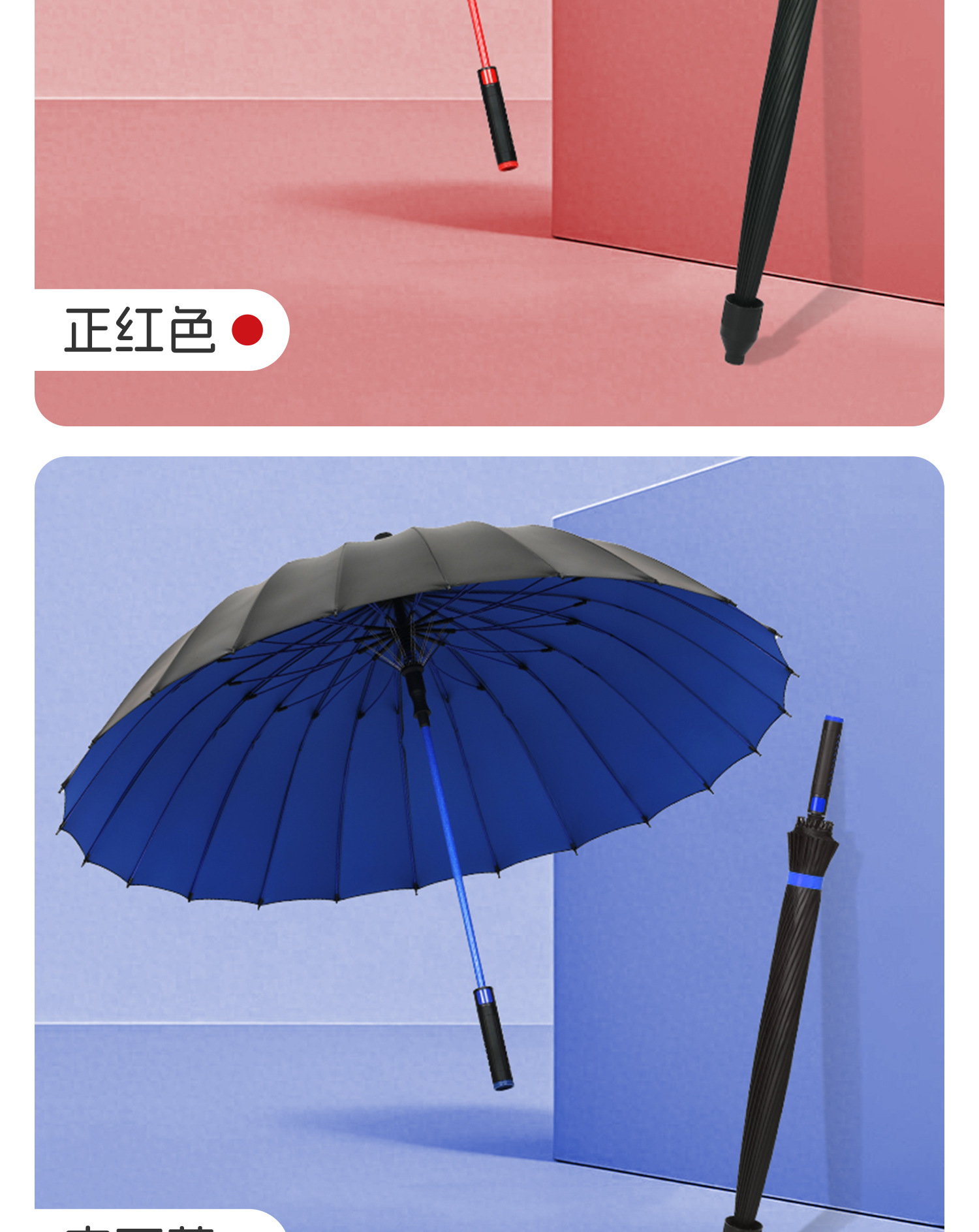 120cm big umbrella 24 ribs [bent handle-dry when closing] plus-sized thickened reinforced-sapphire blue