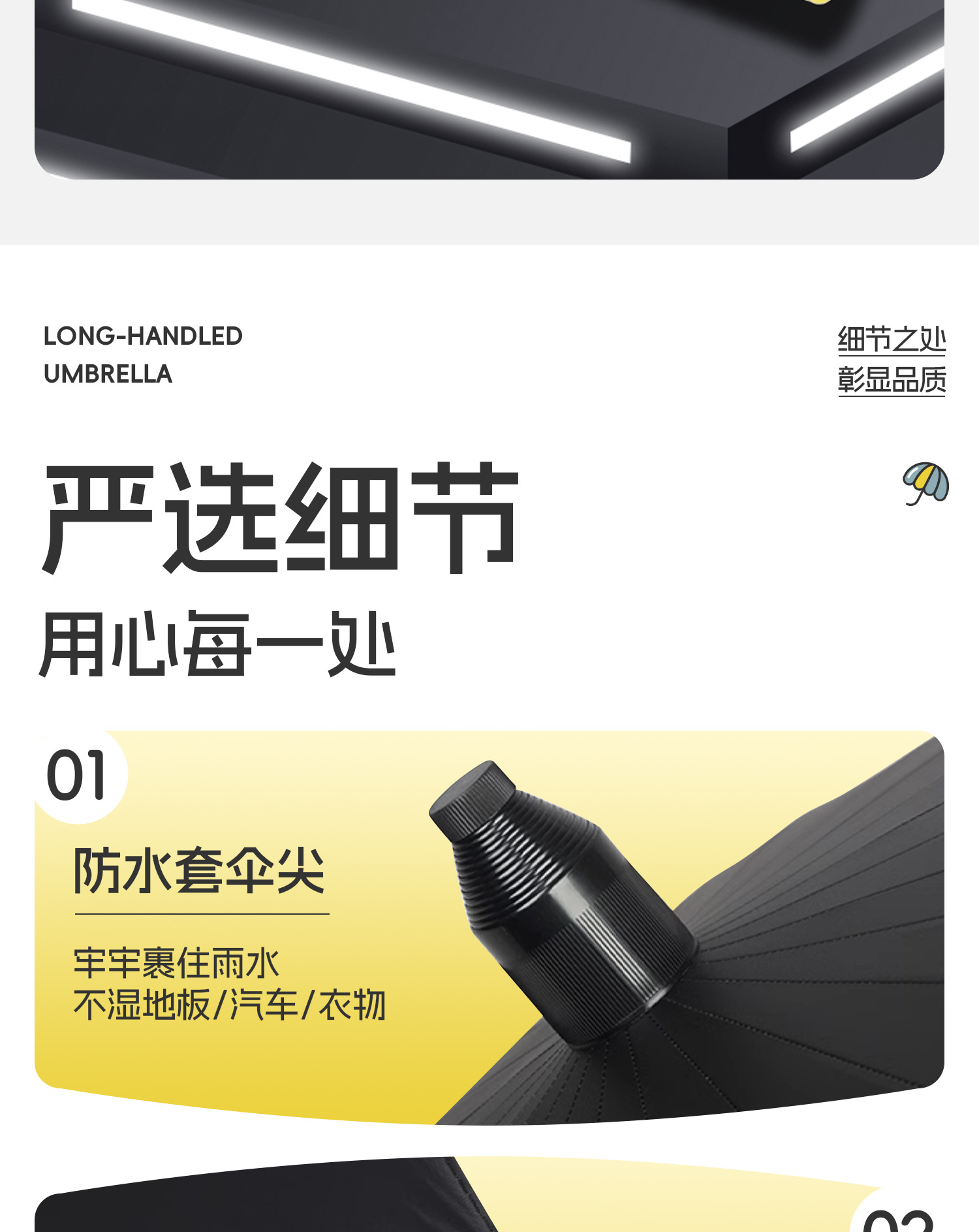 120cm big umbrella with 24 ribs [bent handle-keeps you dry when closed] plus-sized, thicker and more sturdy-obsidian black