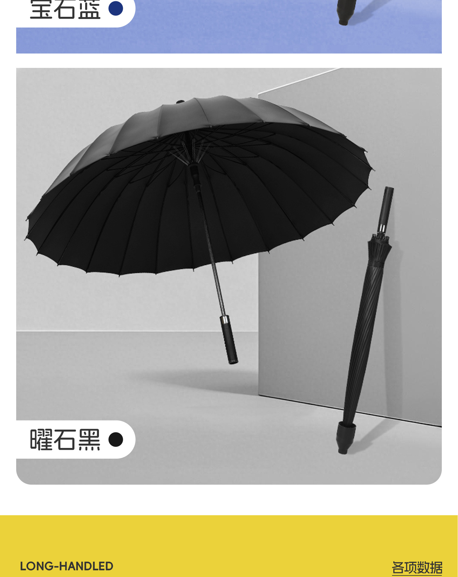 120cm big umbrella 24 ribs [straight handle-dry when closing] plus-sized thickened reinforced-gem blue