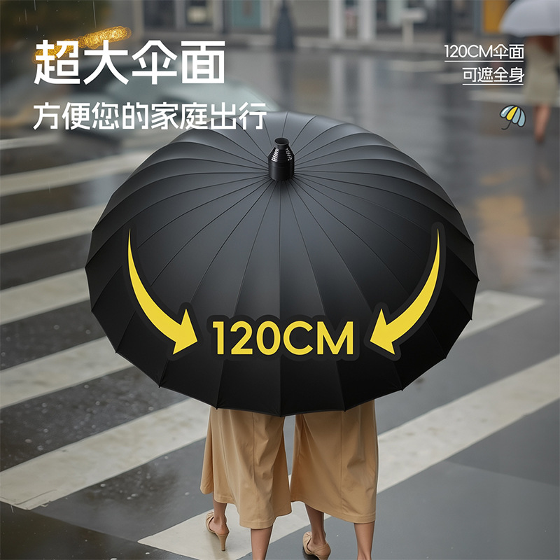 120cm umbrella automatic large size 16-rib [straight handle-keeps you dry when closed] plus-sized thickened reinforced-obsidian black