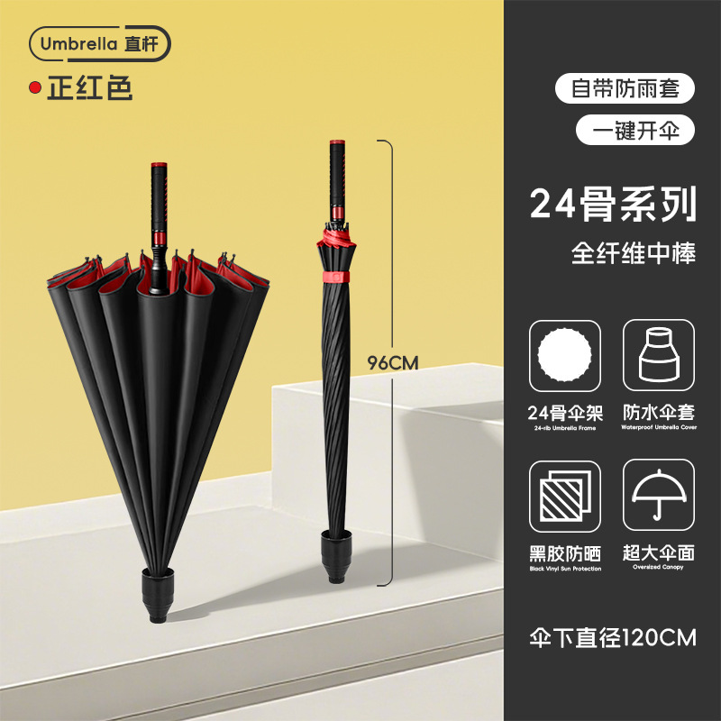 120cm big umbrella 24 ribs [straight handle-dry when closing] plus-sized thickened and reinforced-bright red
