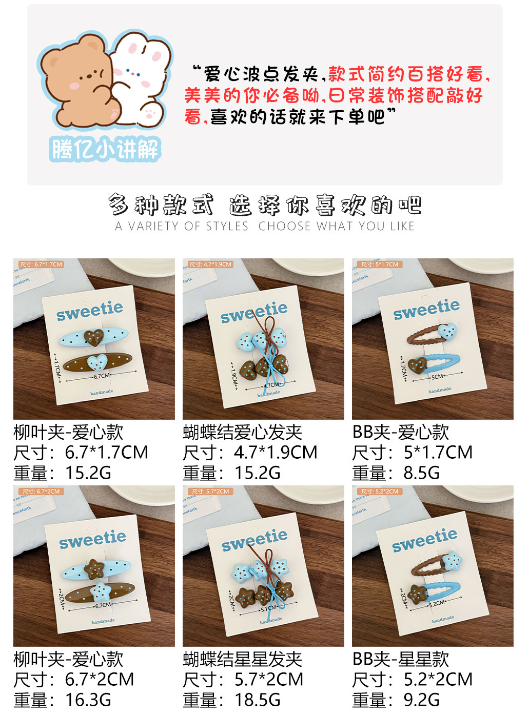 1# bow fork barrettes set