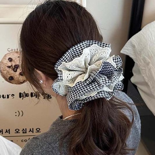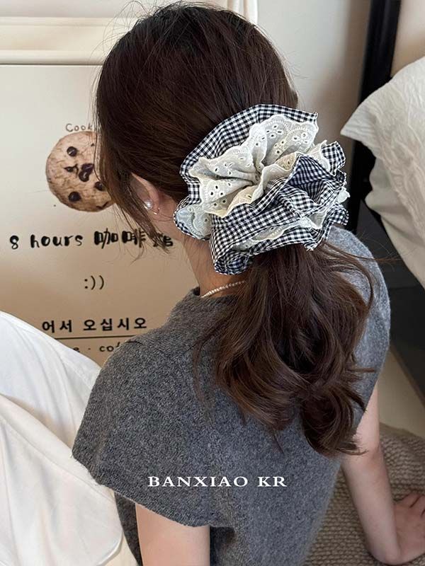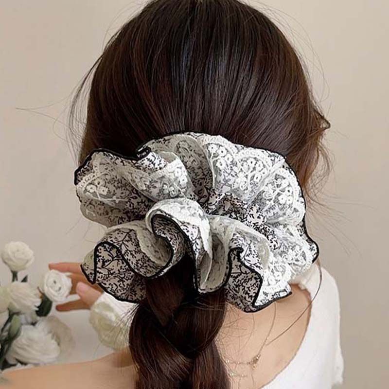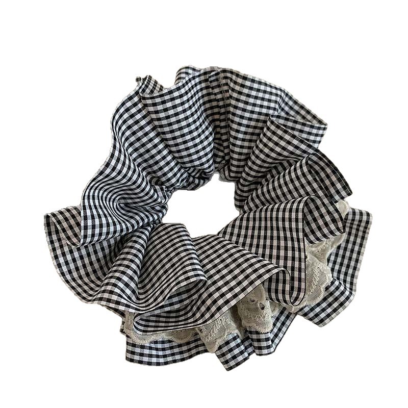 black and white lattice pattern spliced lace four-layer approximately 15cm hair ring