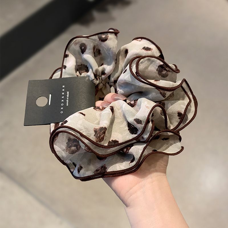 coffee-colored polka-dot floral stitched chiffon four-layer hair tie, approximately 15 cm.