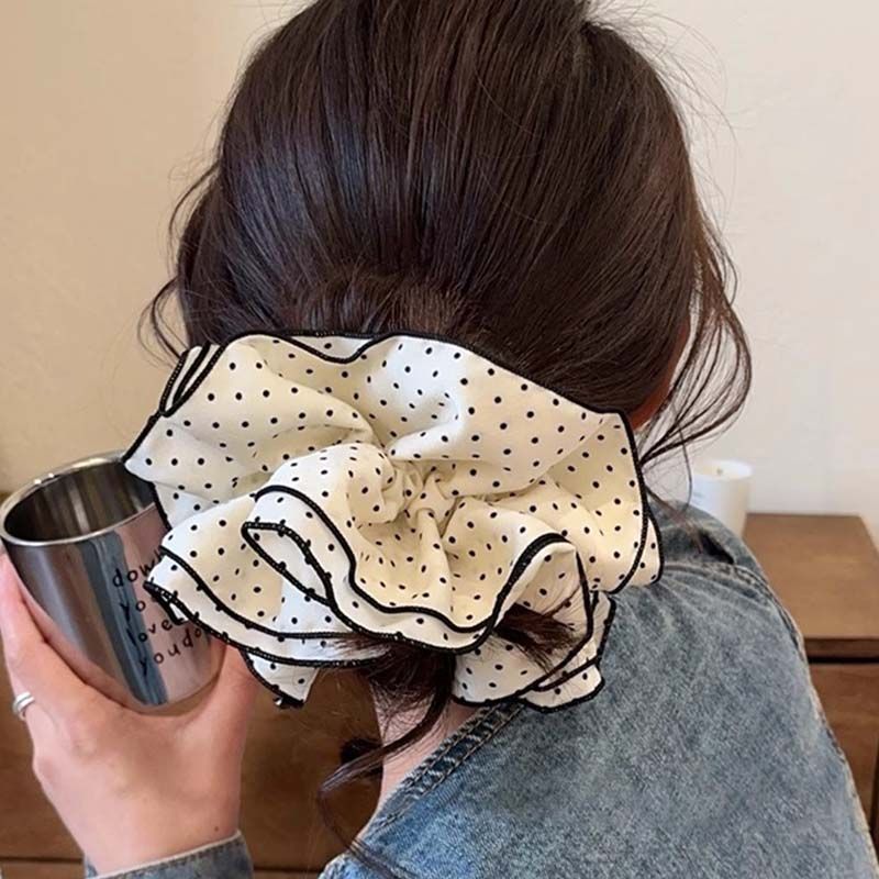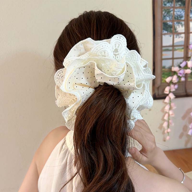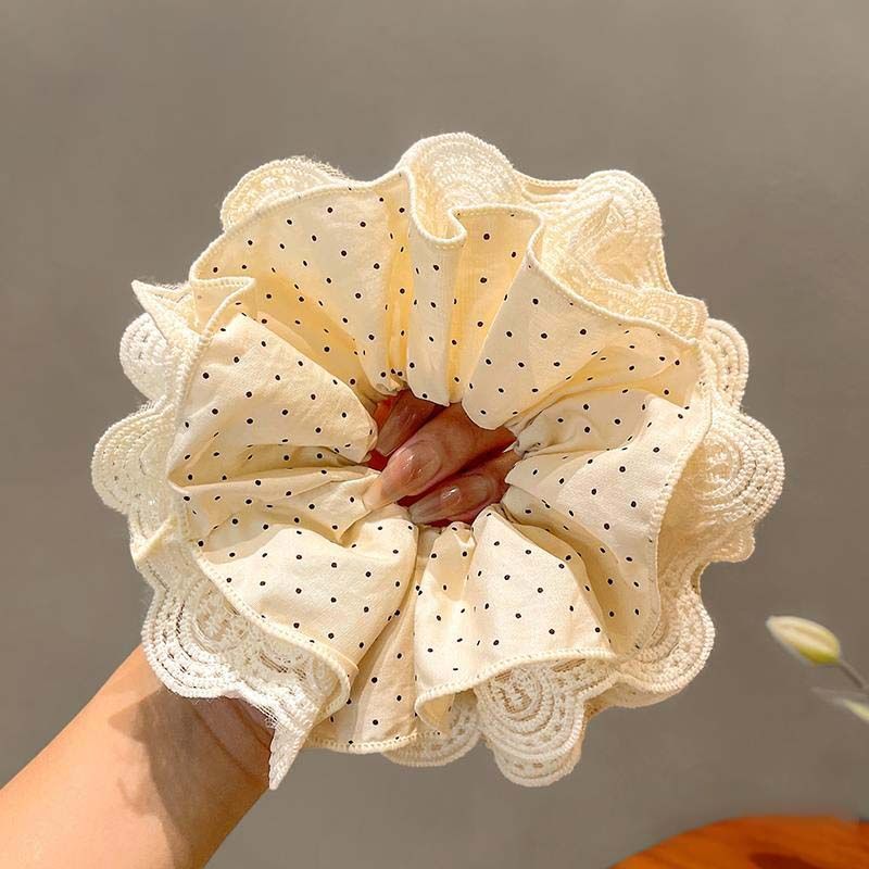 large lace trim beige dots four-layer approximately 16cm hair tie