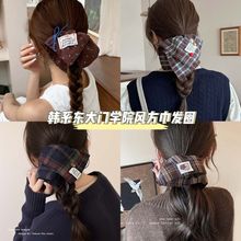 blue and coffee plaid four-layer hair tie, approximately 17cm [tolerance unavoidable]