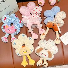 puppy button blue plaid bow approximately 13cm lace large intestine hair tie