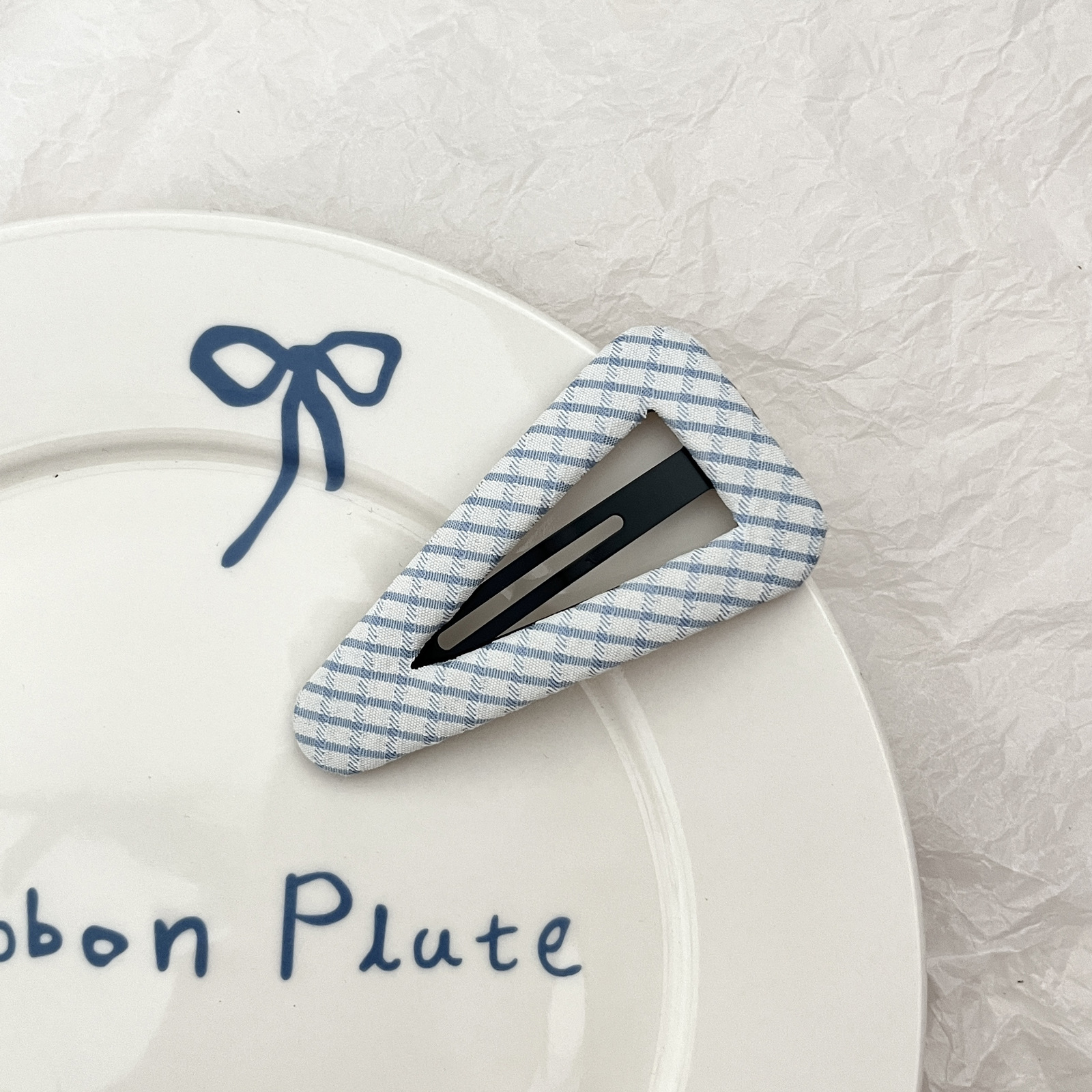 blue and white plaid triangle clip
