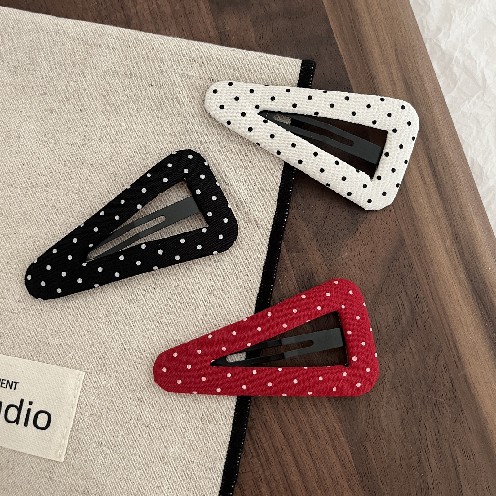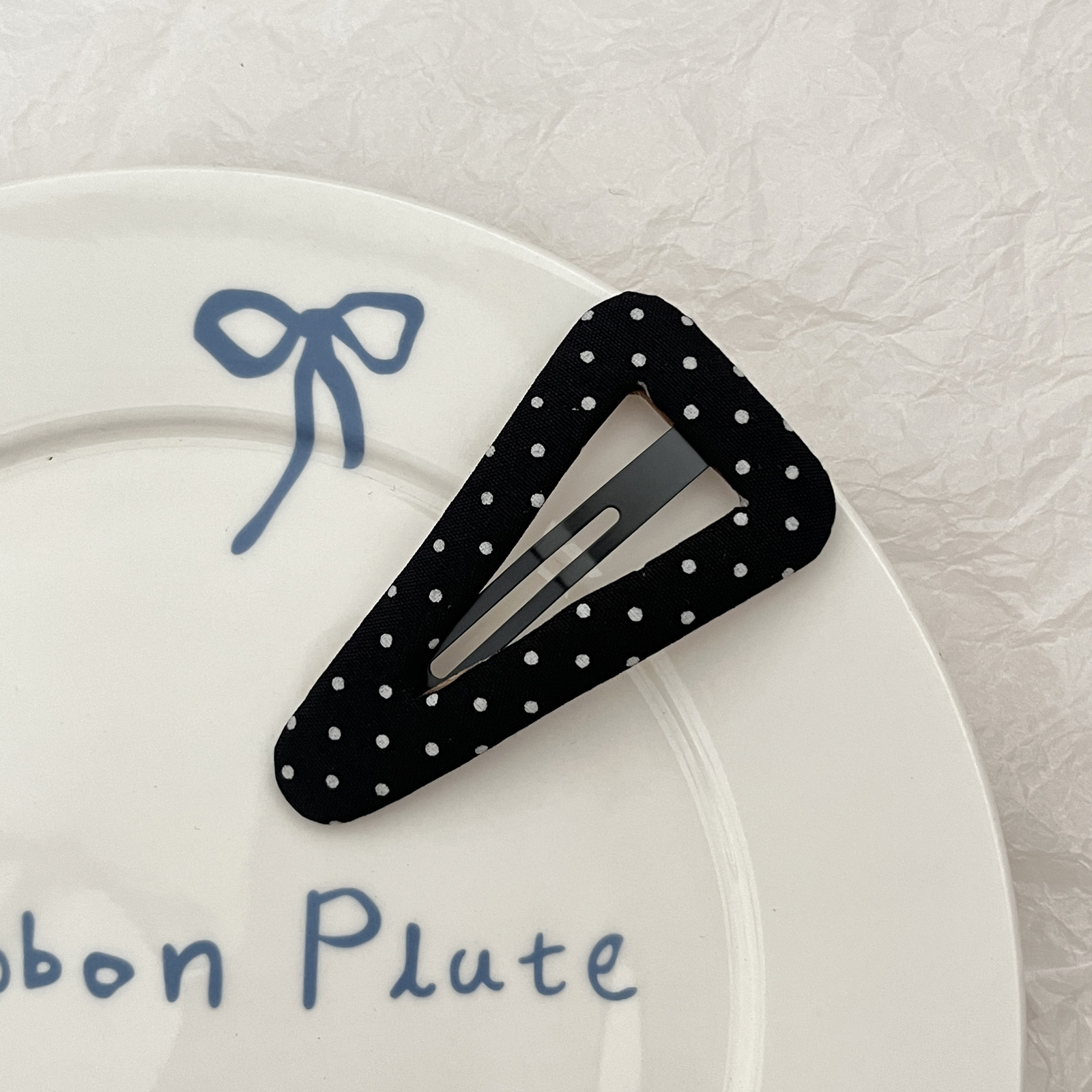 black polka-dot triangle clip