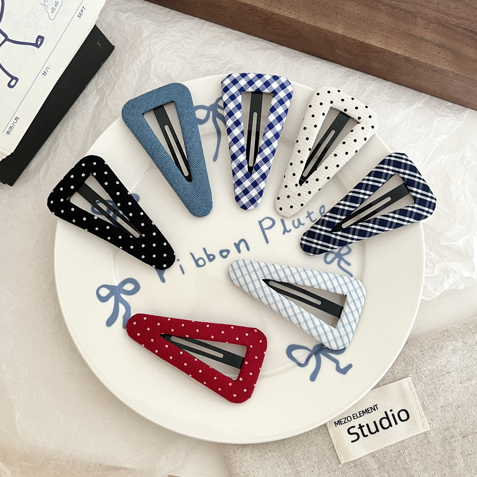 white polka-dot triangle clip