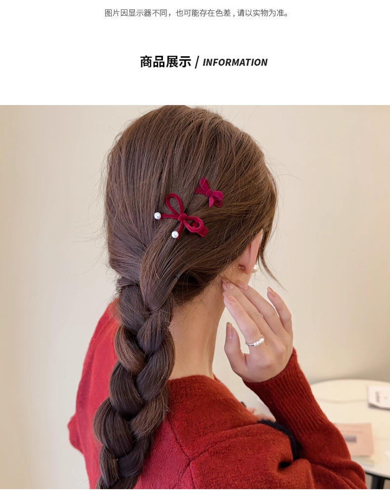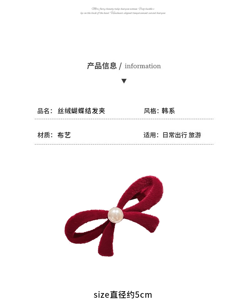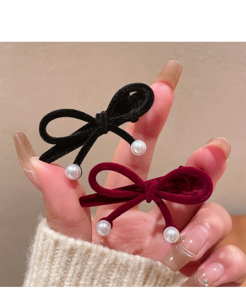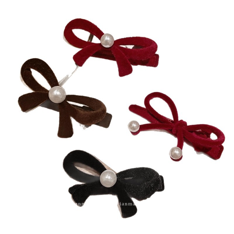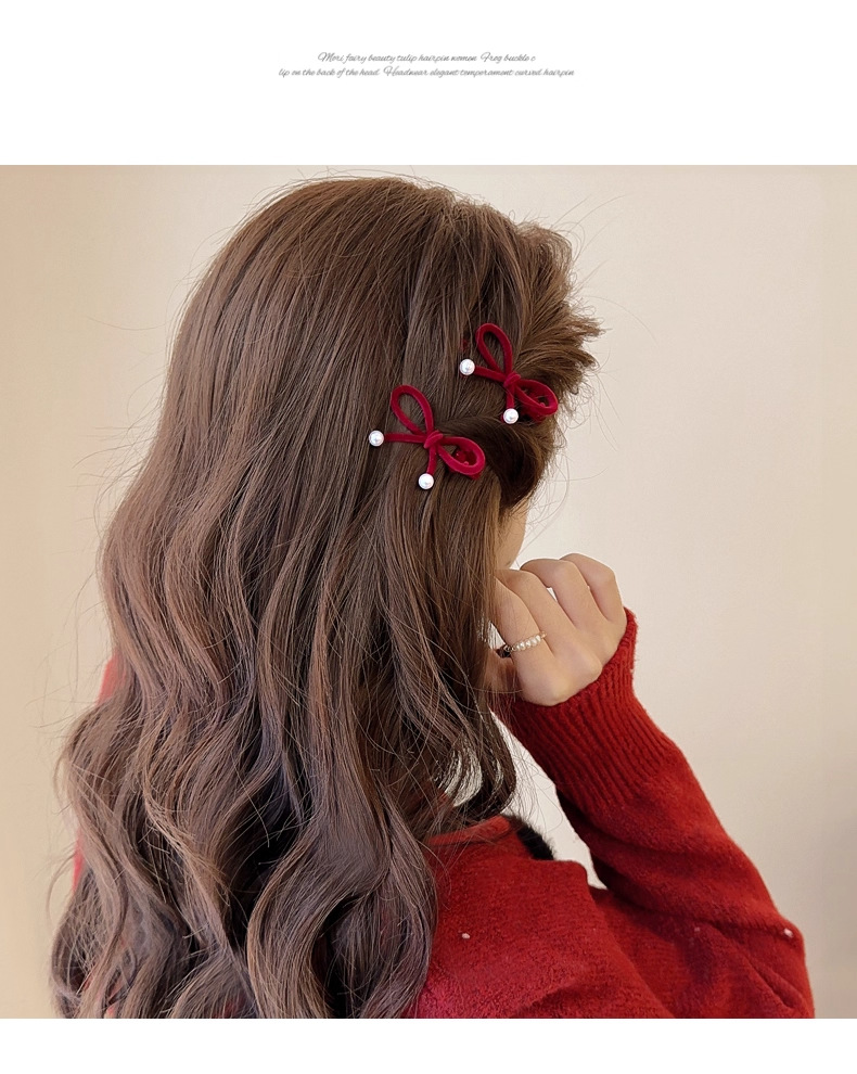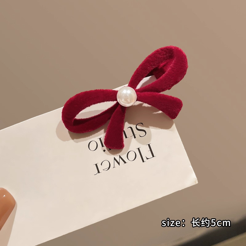 wine red bow pearl barrettes 1 pair
