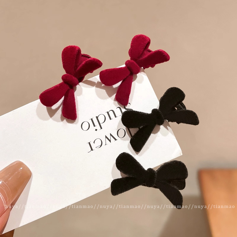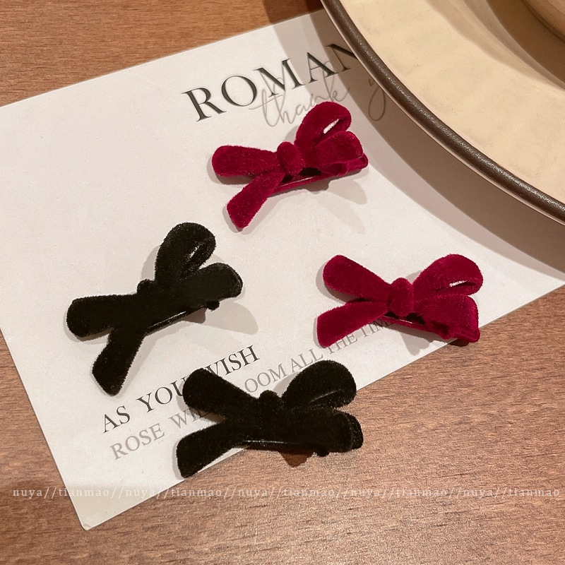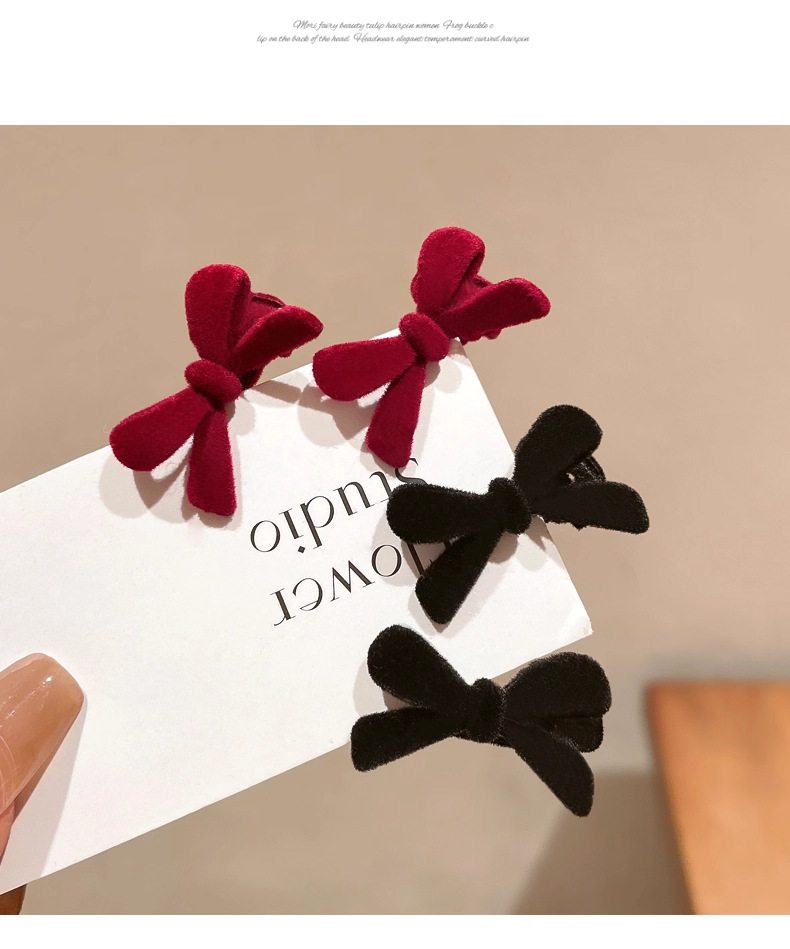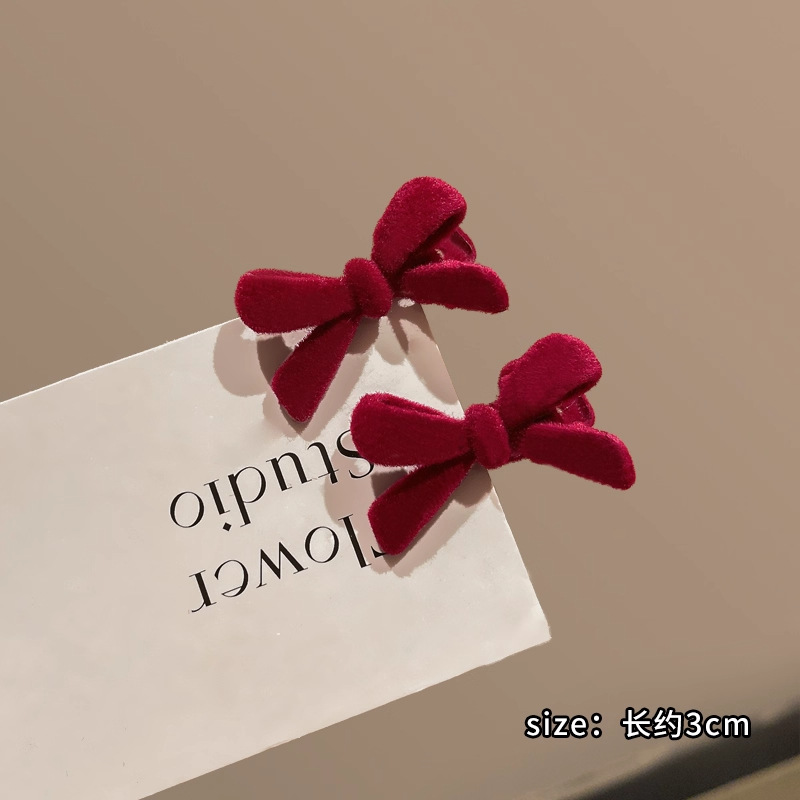 wine red bow barrettes 1 pair