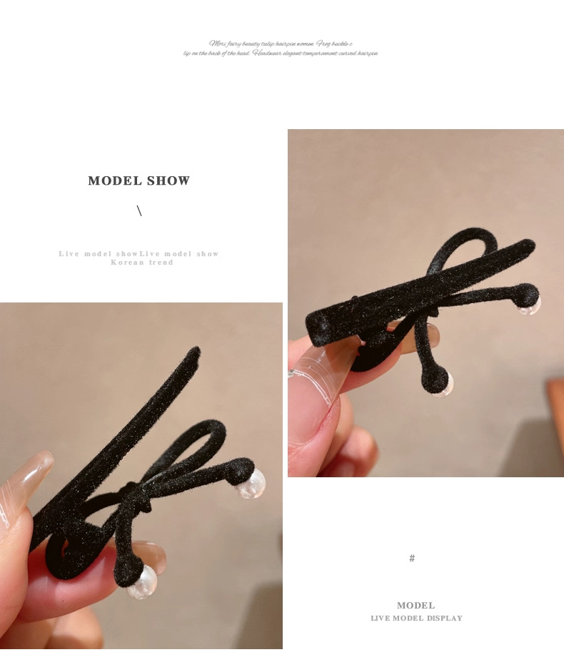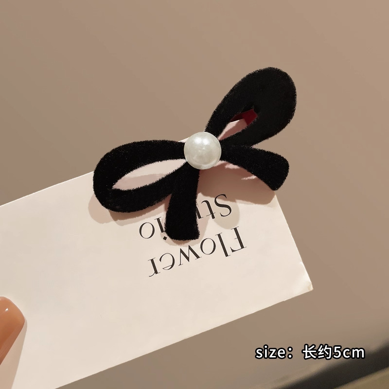 black bow pearl barrettes 1 pair