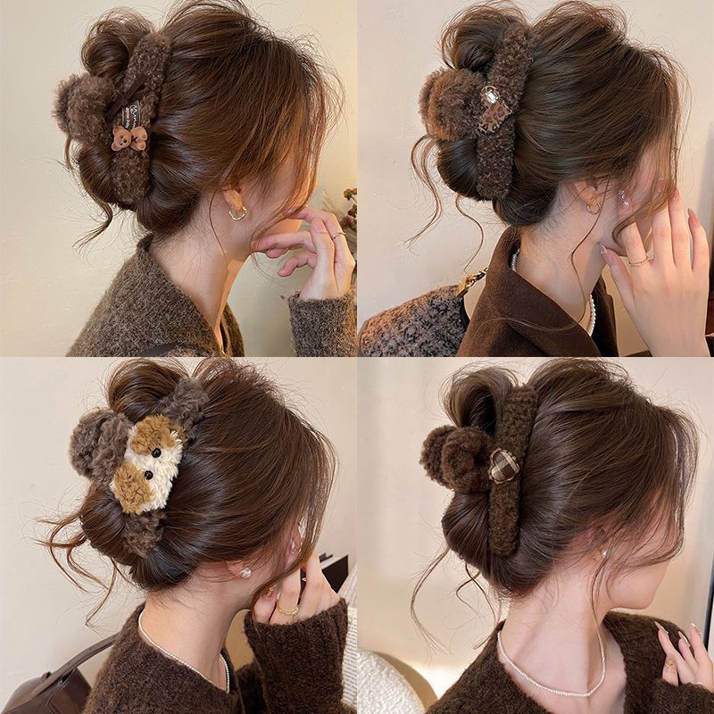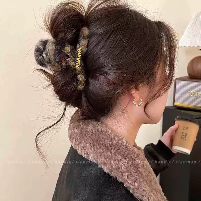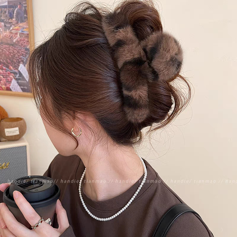 coffee-colored small curl medium size hair claw-8cm