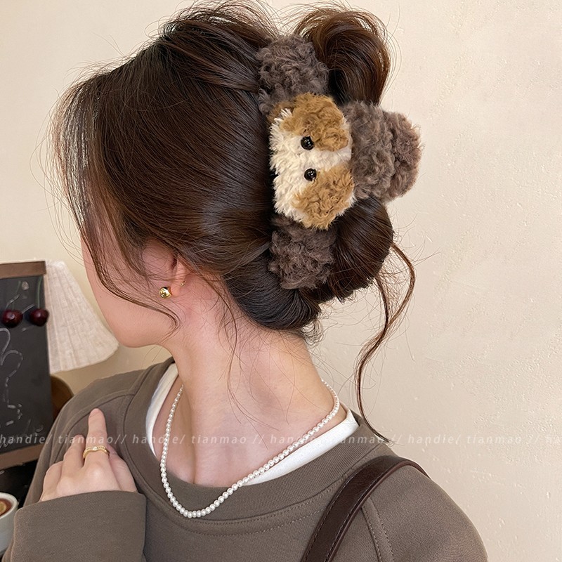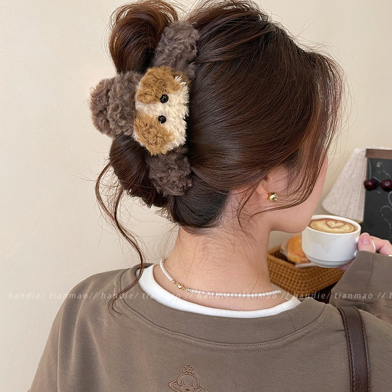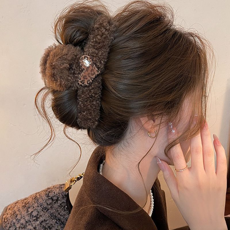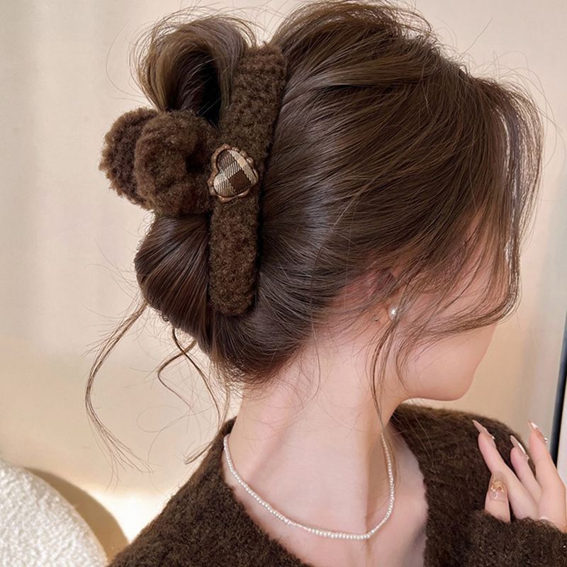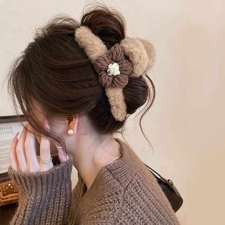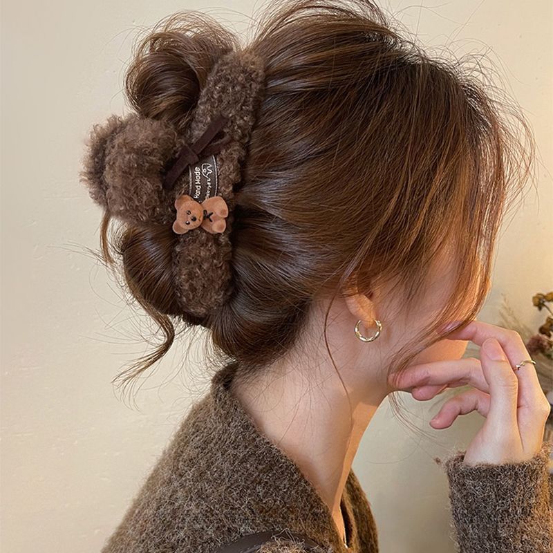 coffee-colored wool bow claw clip-13cm
