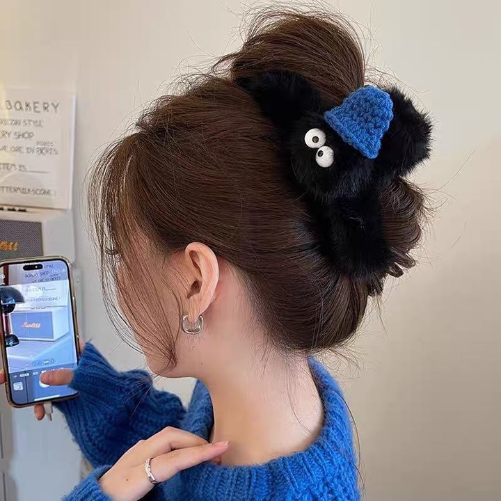 blue woolen bow claw clip -- 13cm