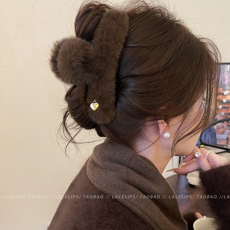 coffee-colored teddy fur heart grip-13cm