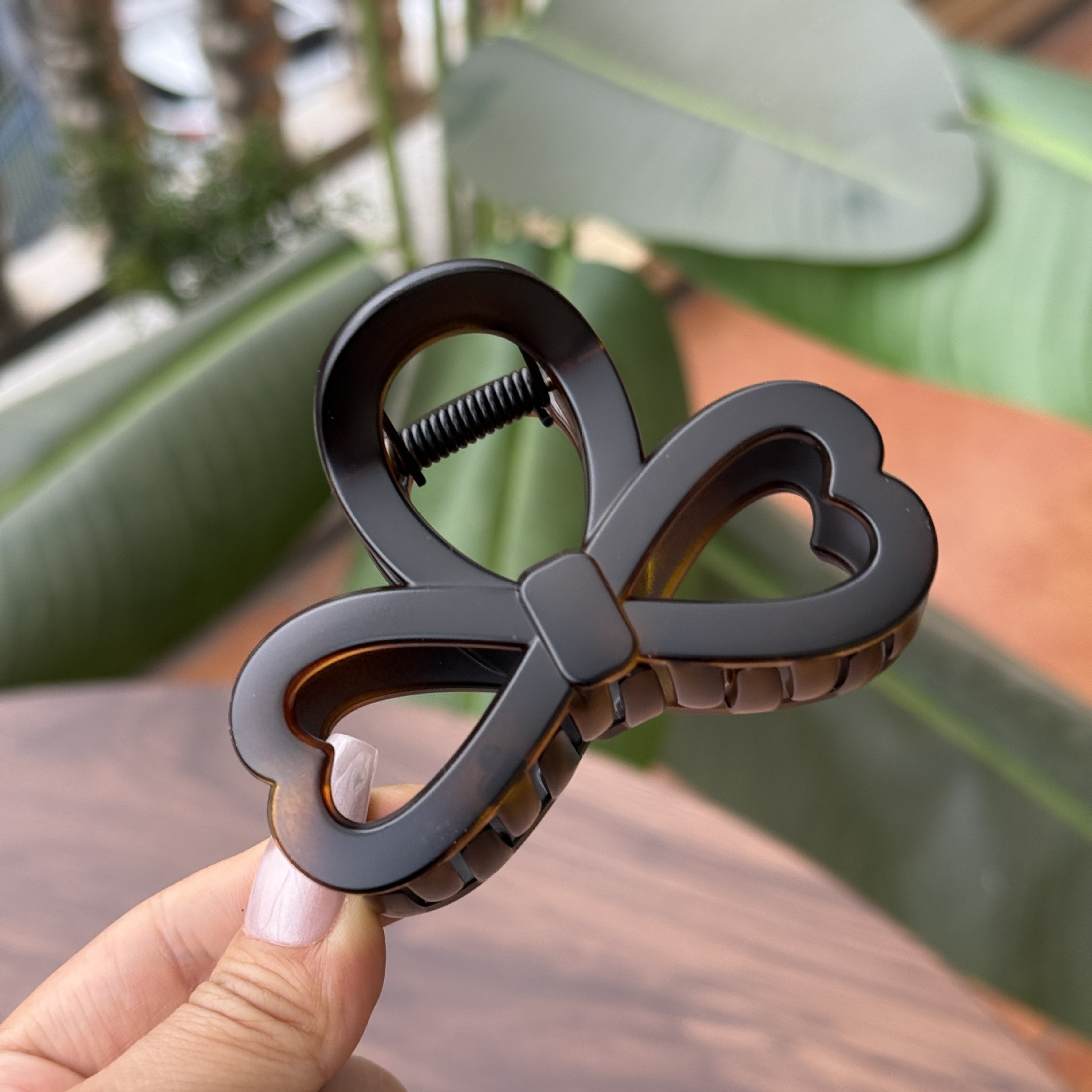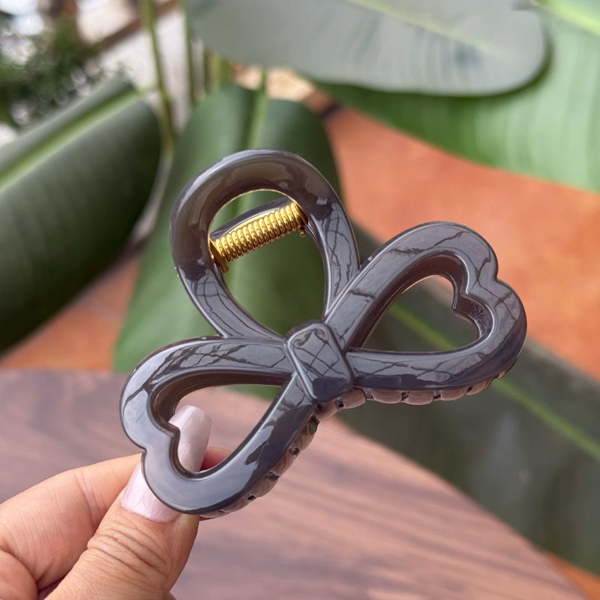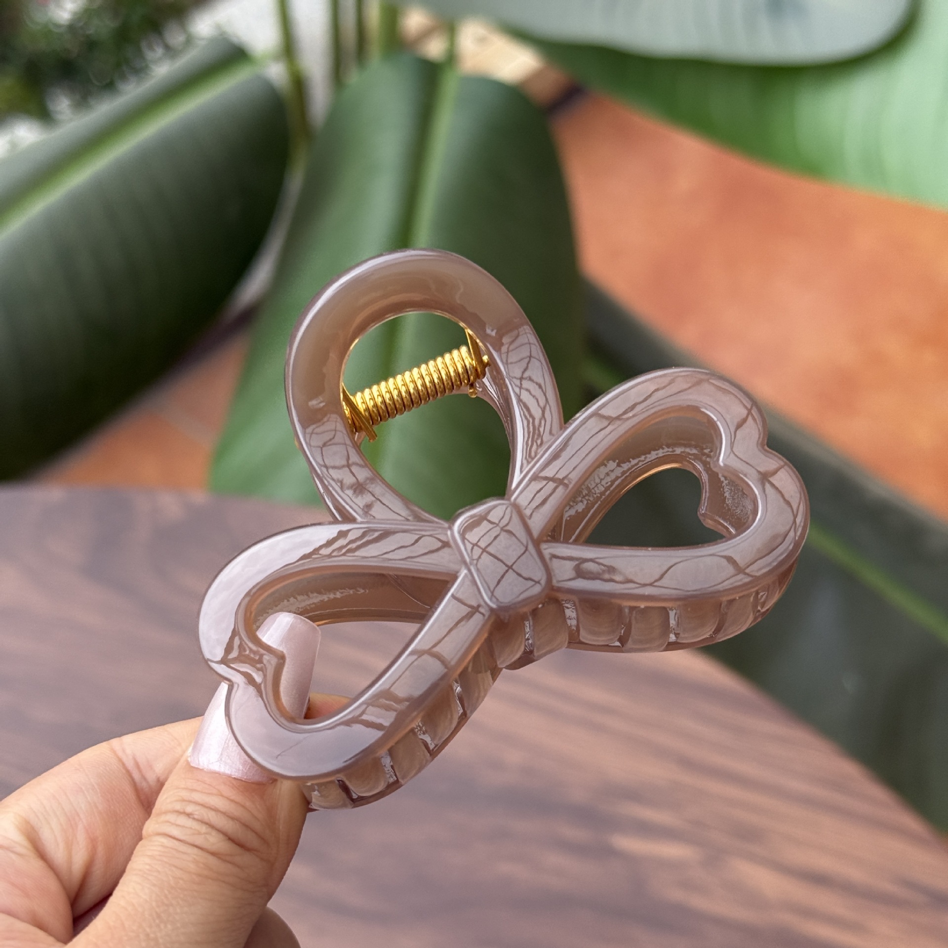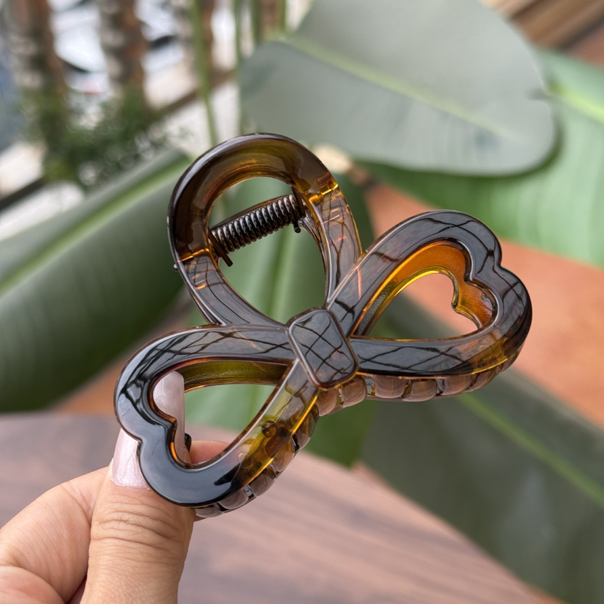 transparent brown-medium grab with love heart bow tie (8cm)