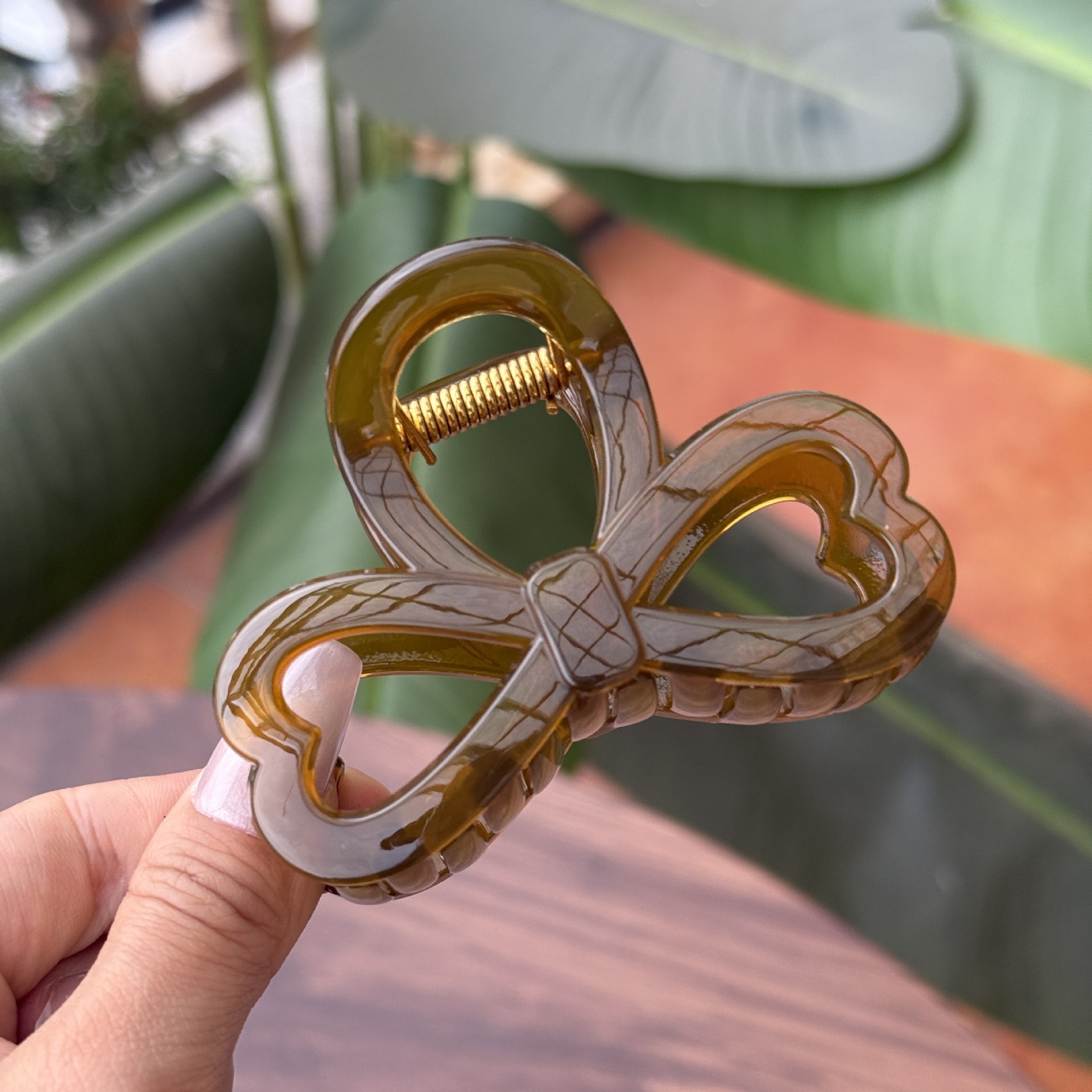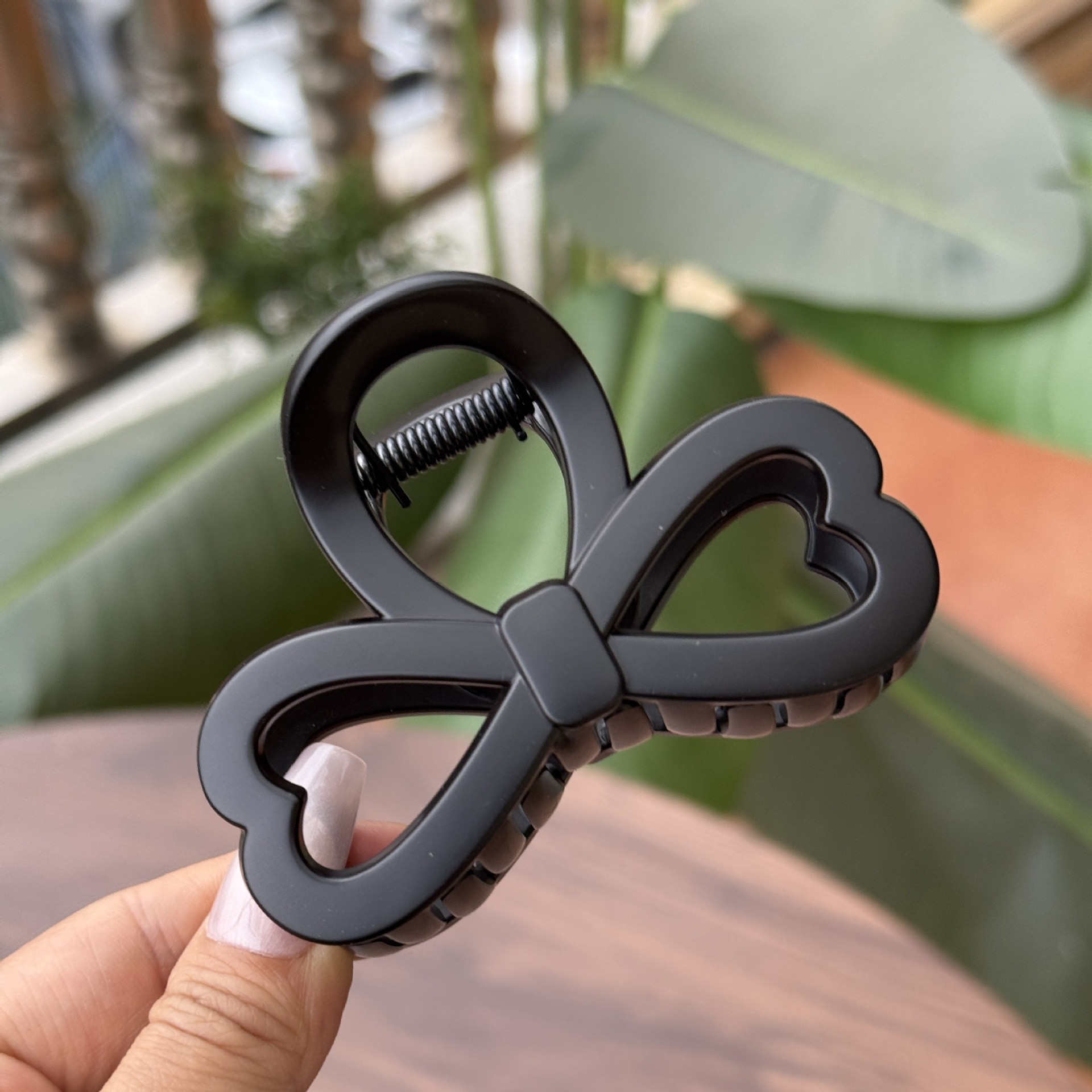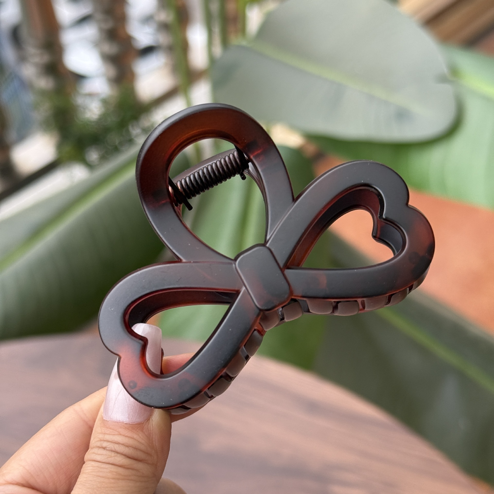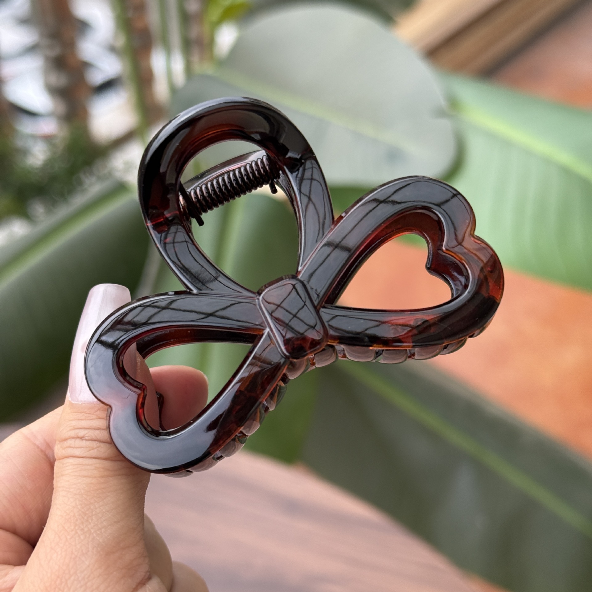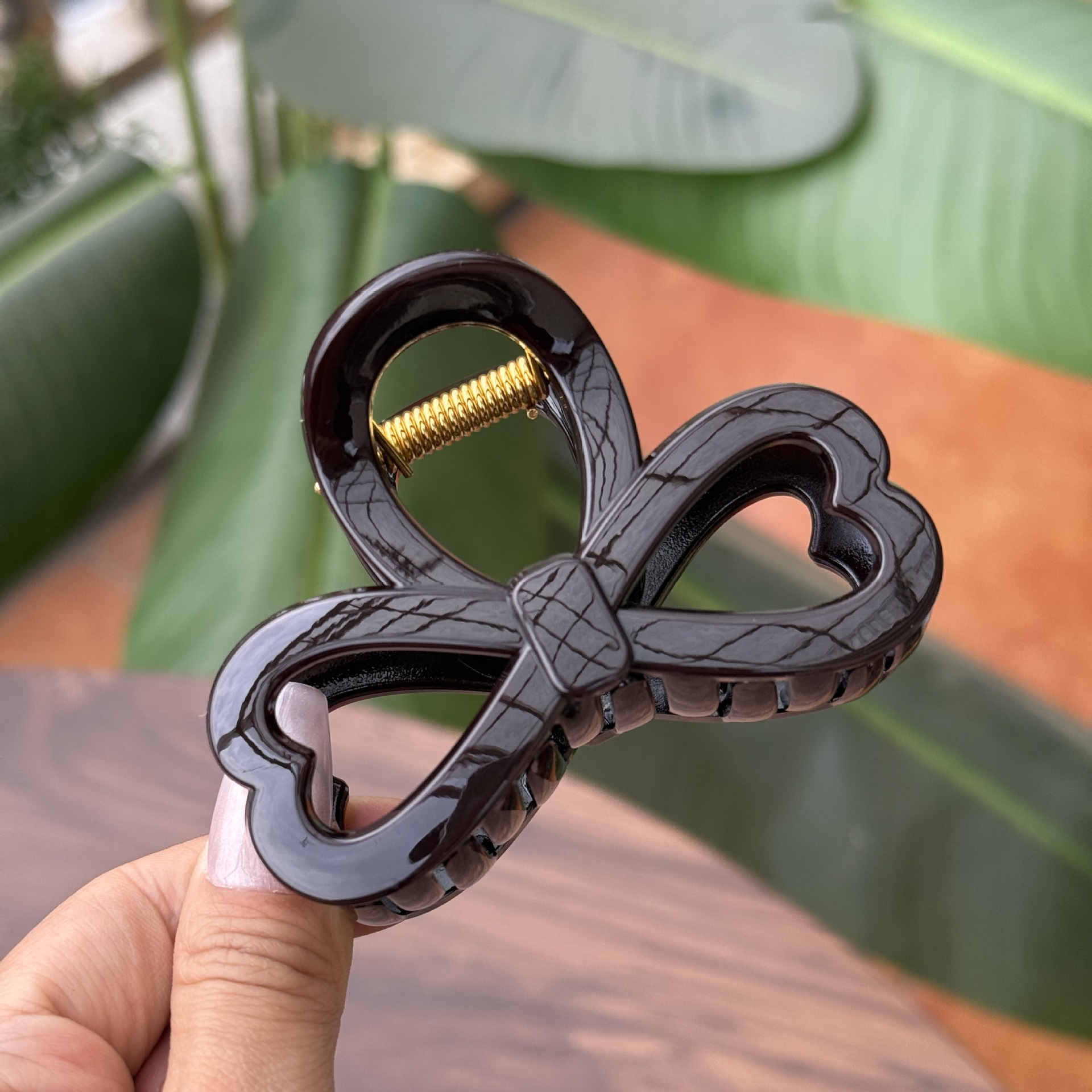 transparent brown-medium grab with love heart bow tie (8cm)