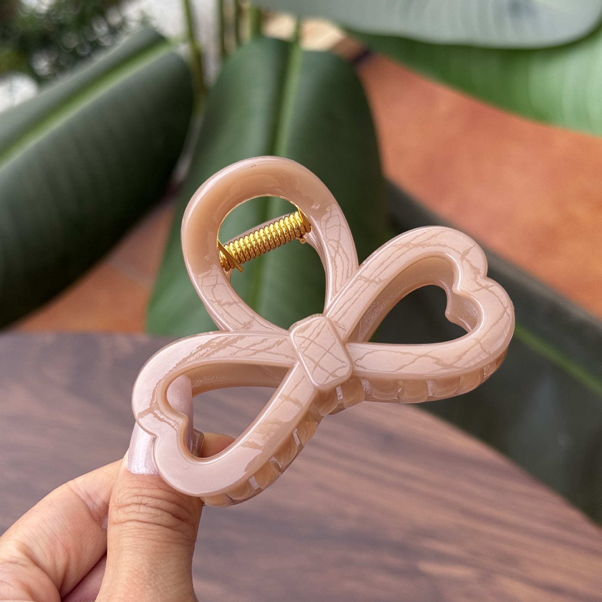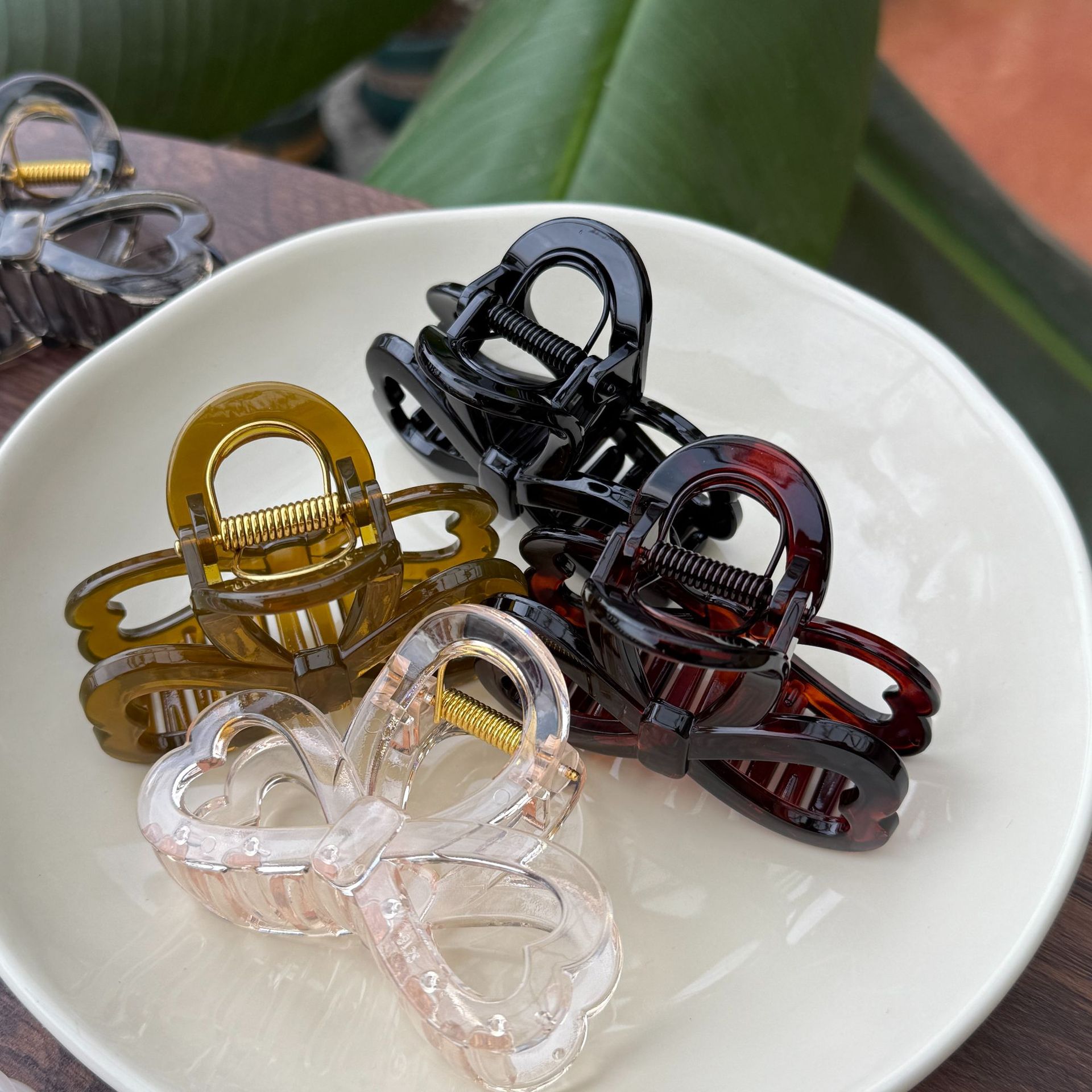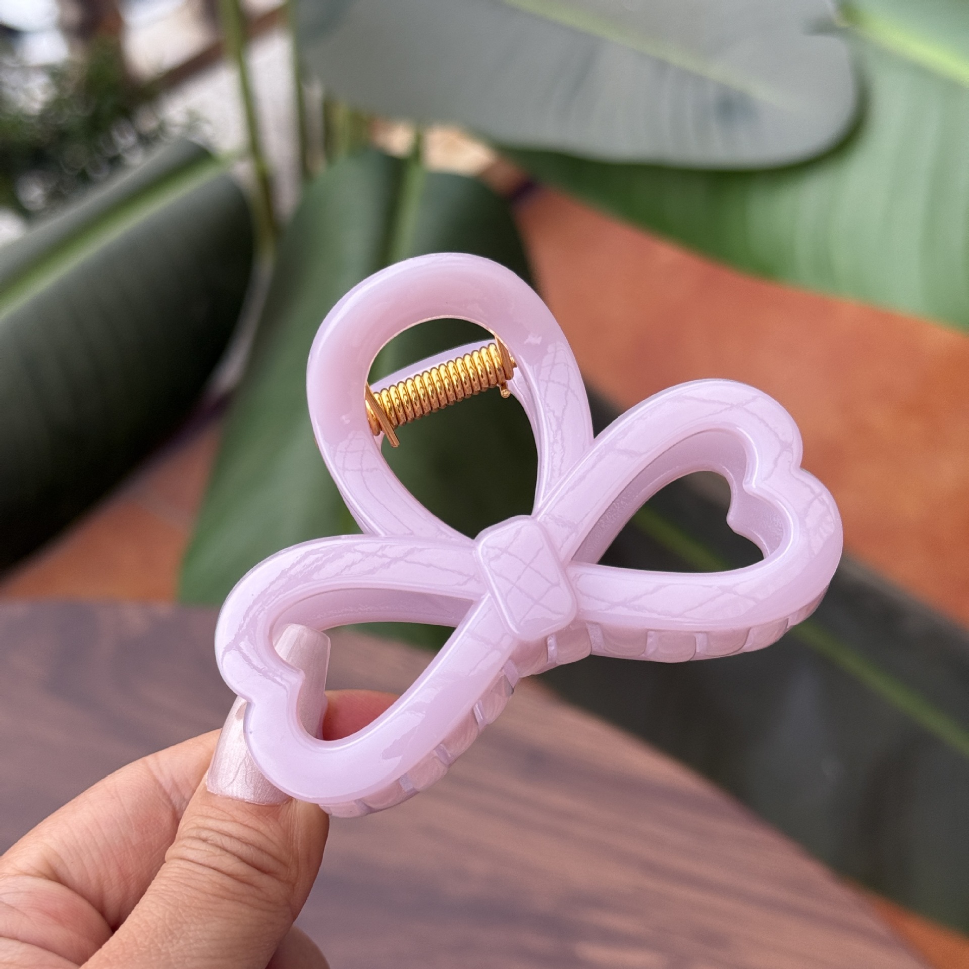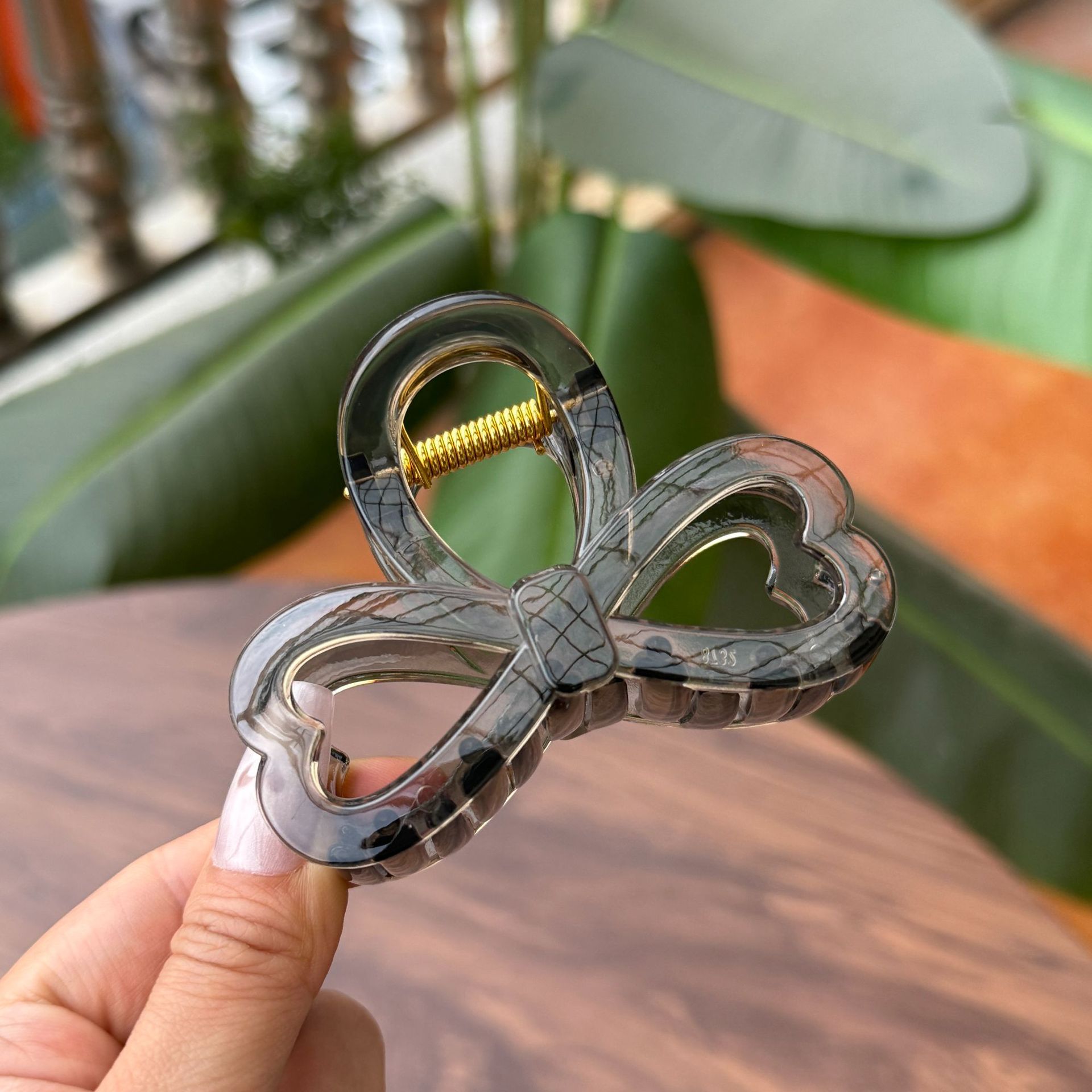 transparent brown-medium grab with love heart bow tie (8cm)