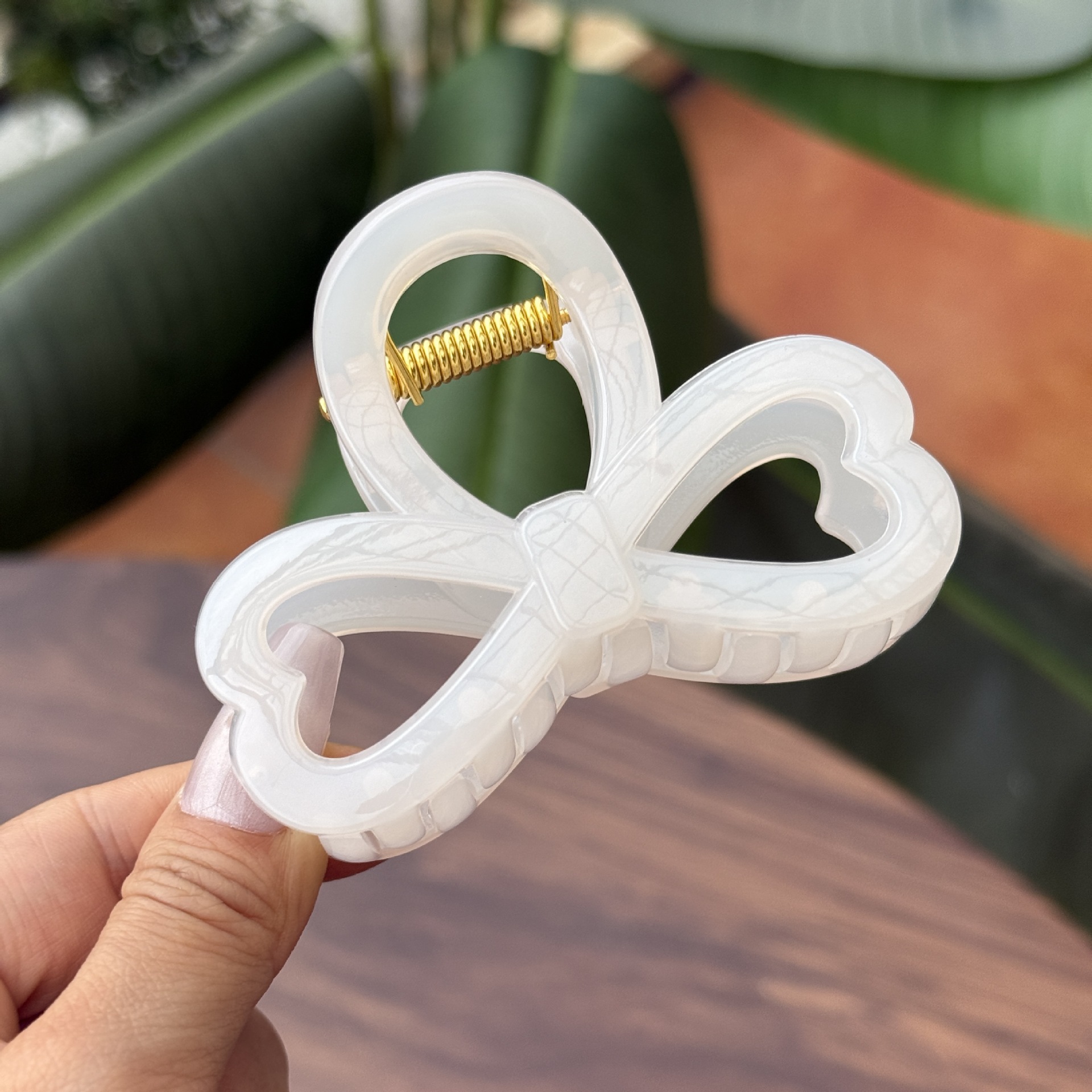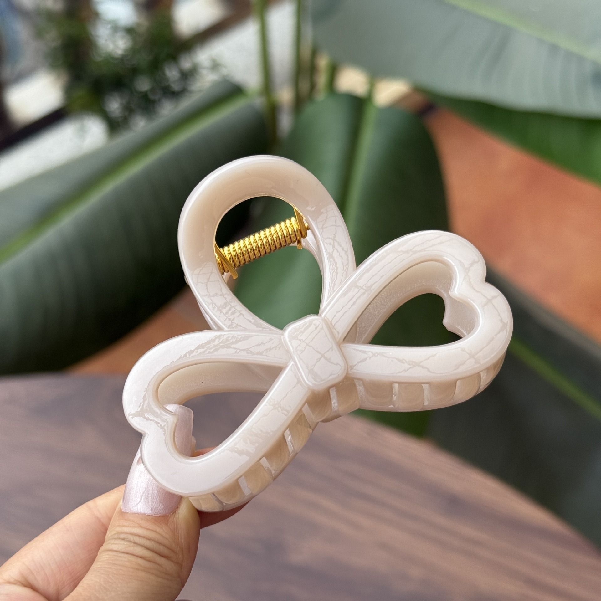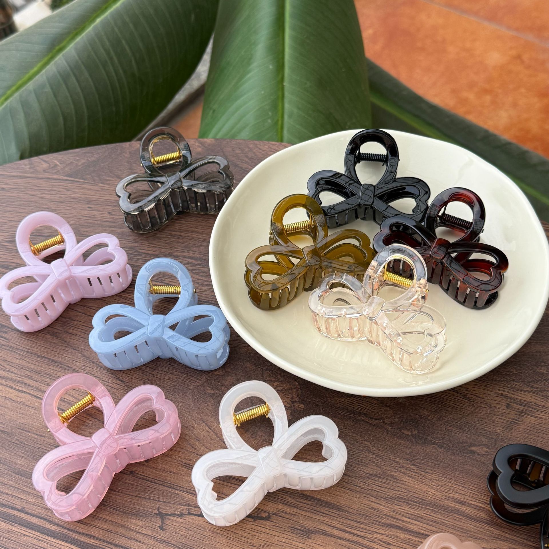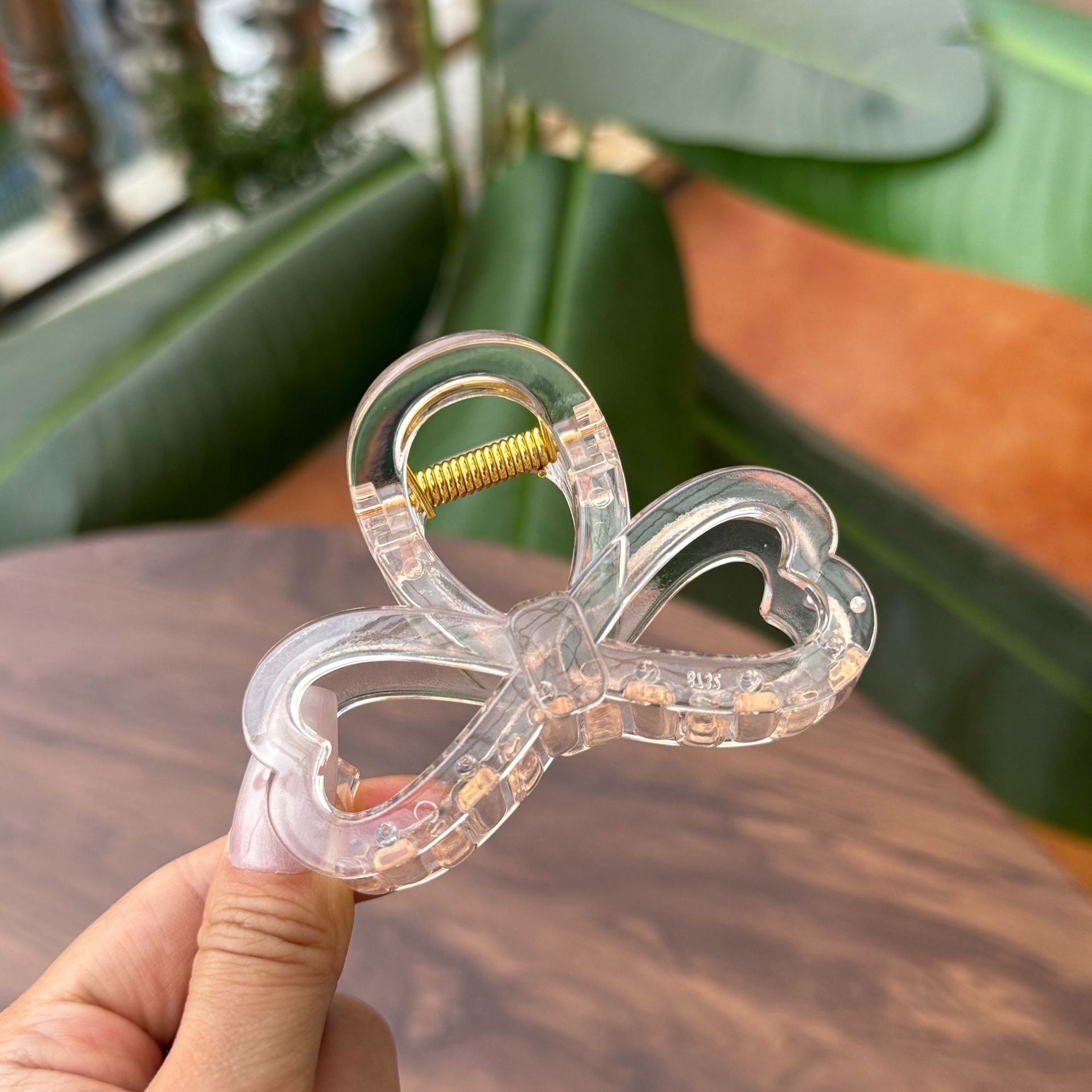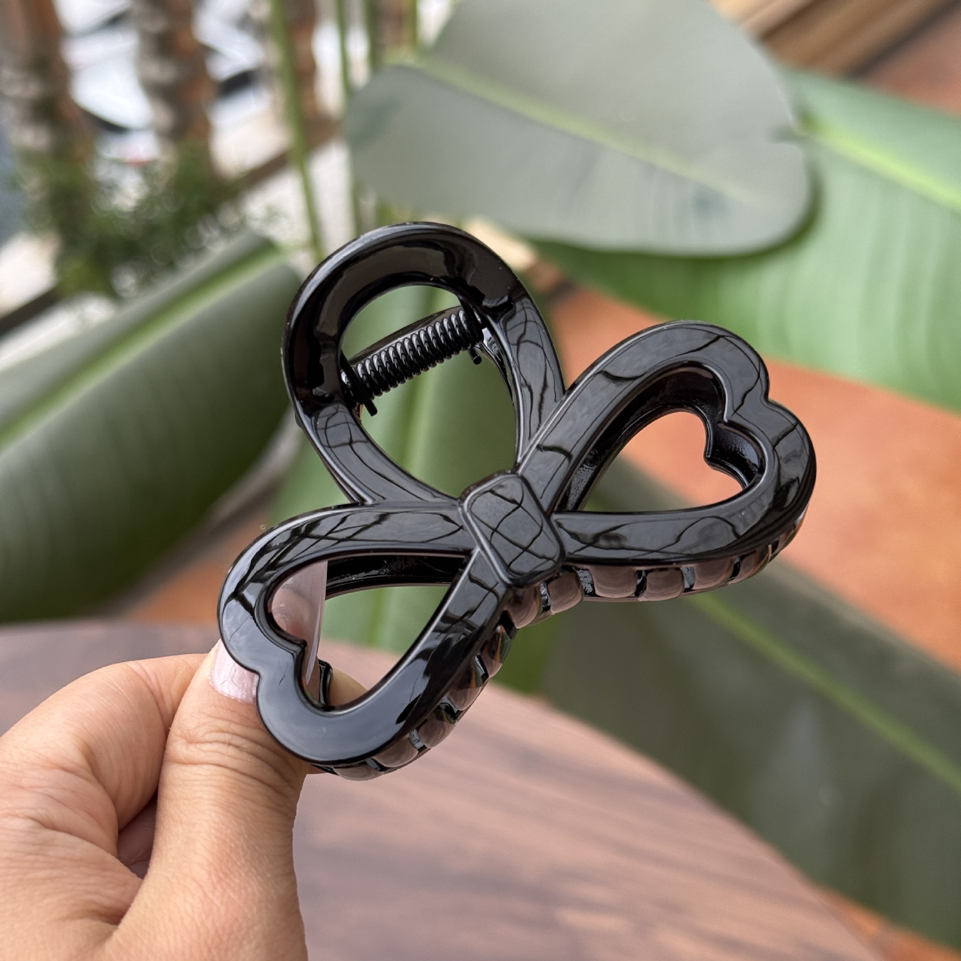 transparent brown-medium grab with love heart bow tie (8cm)