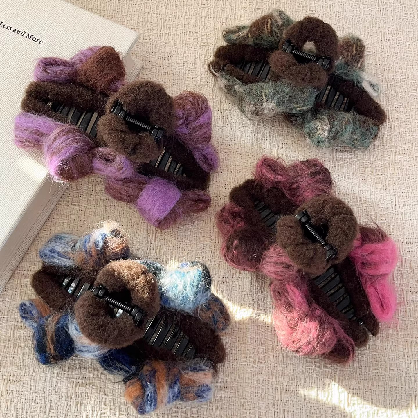 15# green coffee wool ab side small hair grabbing clip-about 13cm