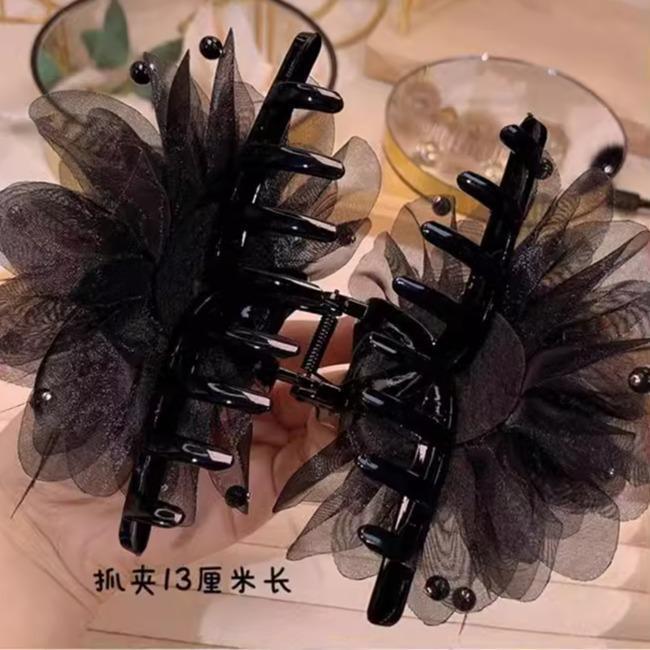 feather tassel beads peony flower-black 13cm