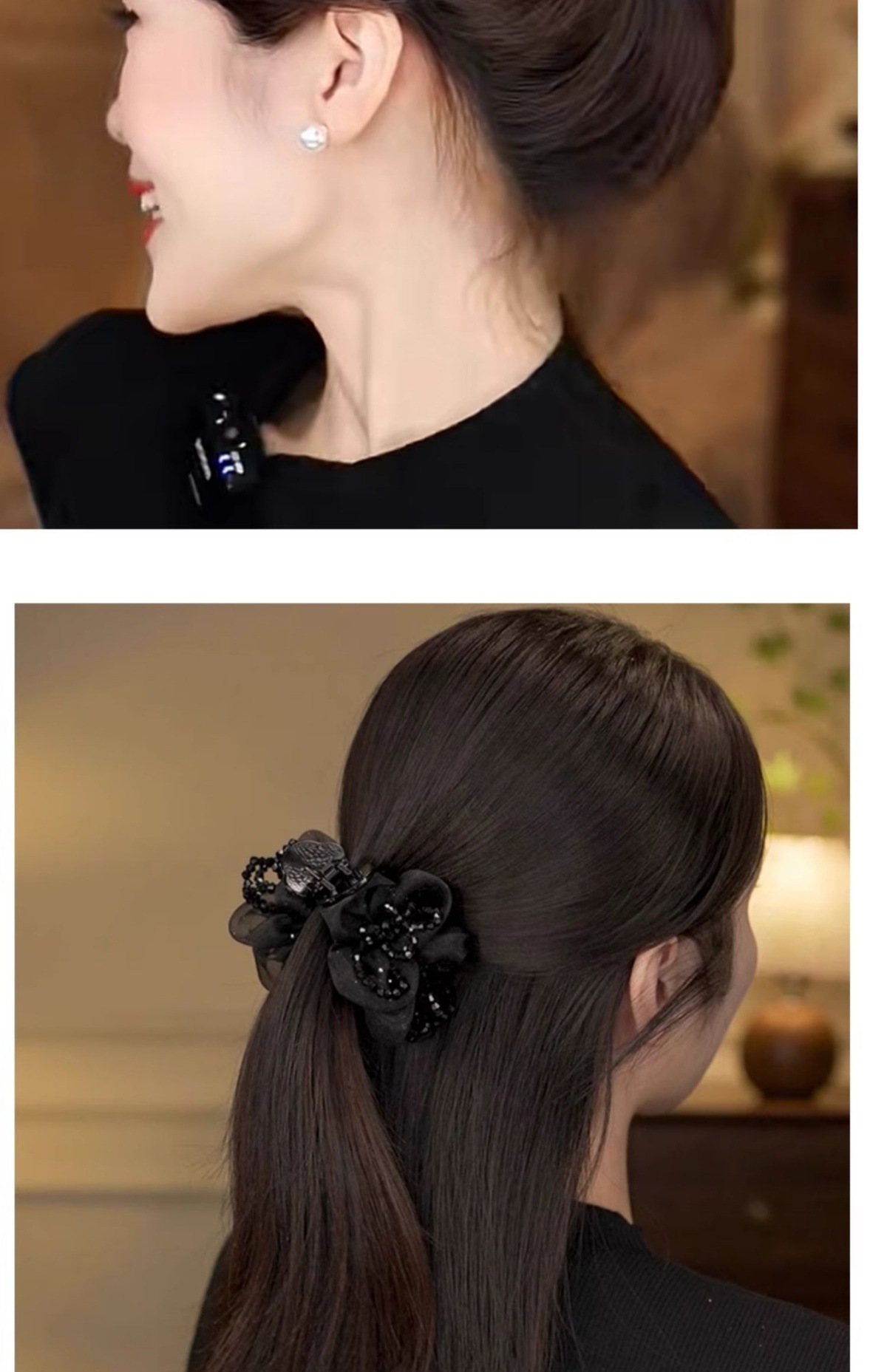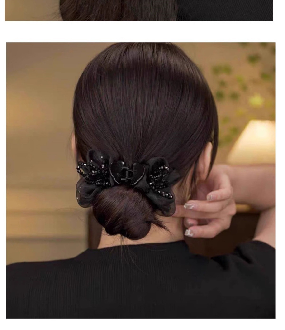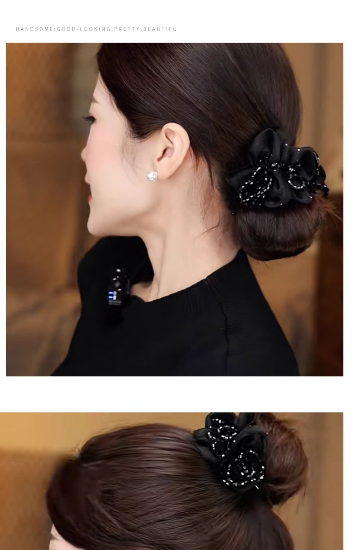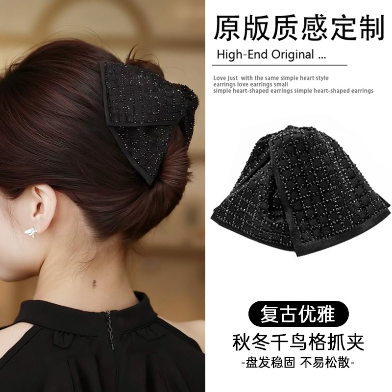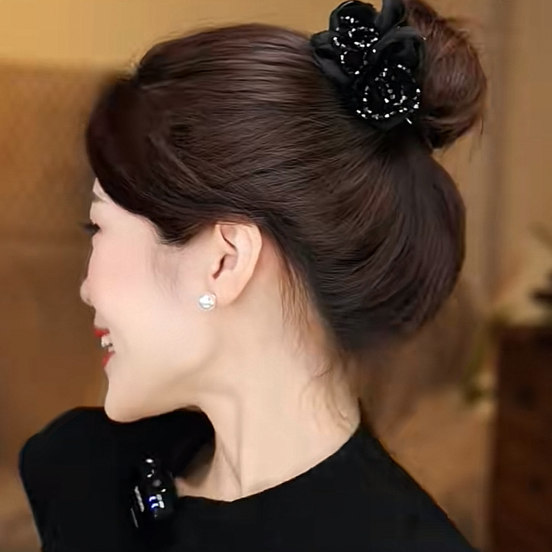 acrylic diamond satin bow bun clip