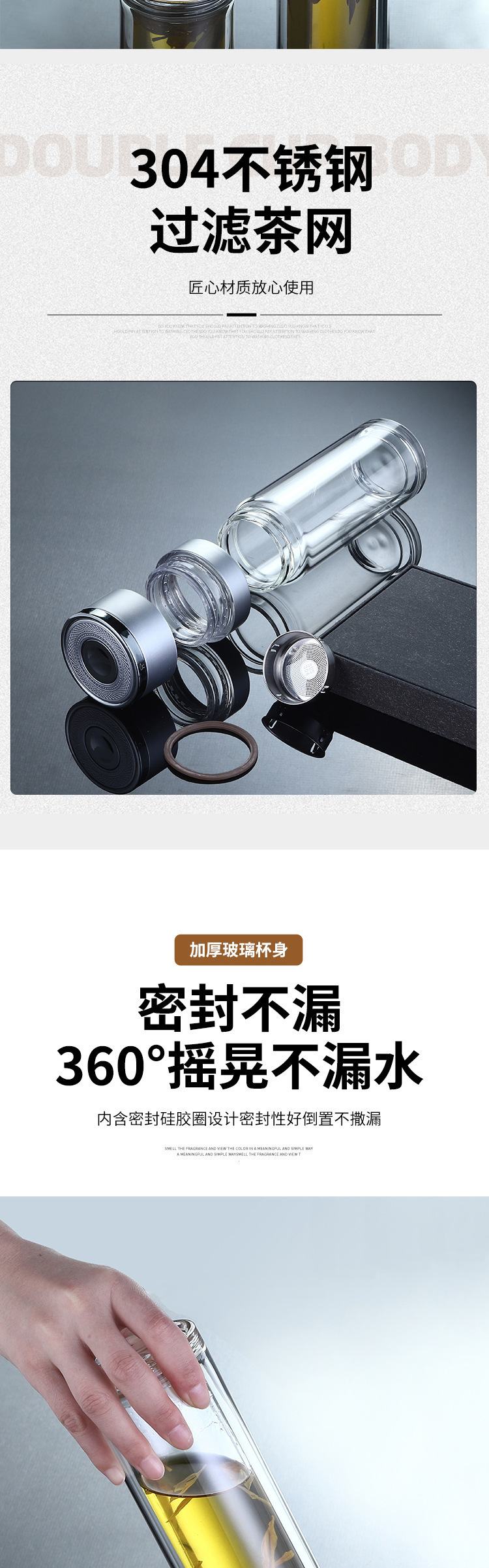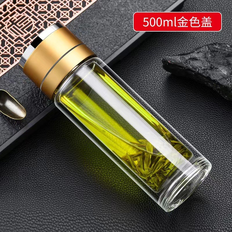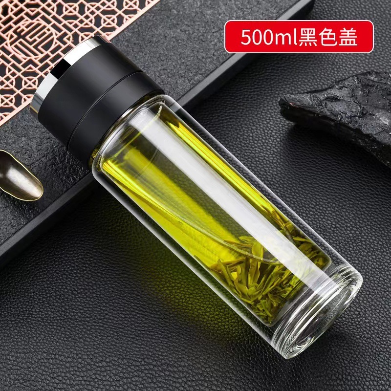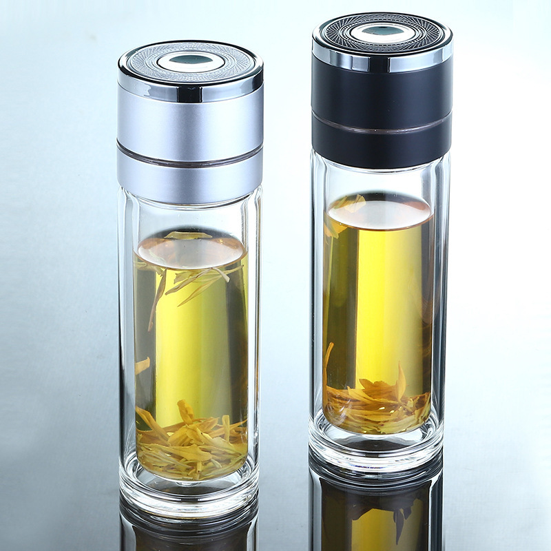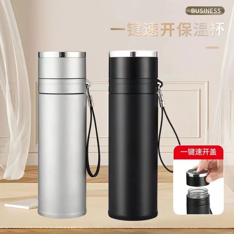 single cup one-click open lid double-layer borosilicate glass vacuum cup simple business cup anti-scald cup cover one piece dropshipping