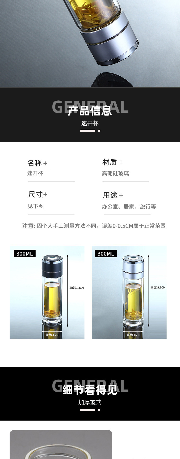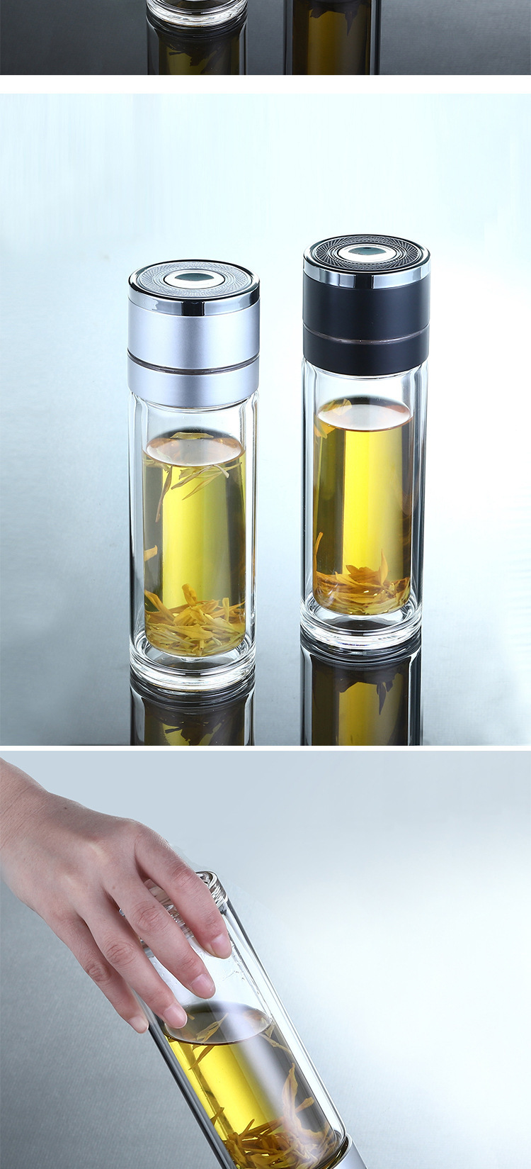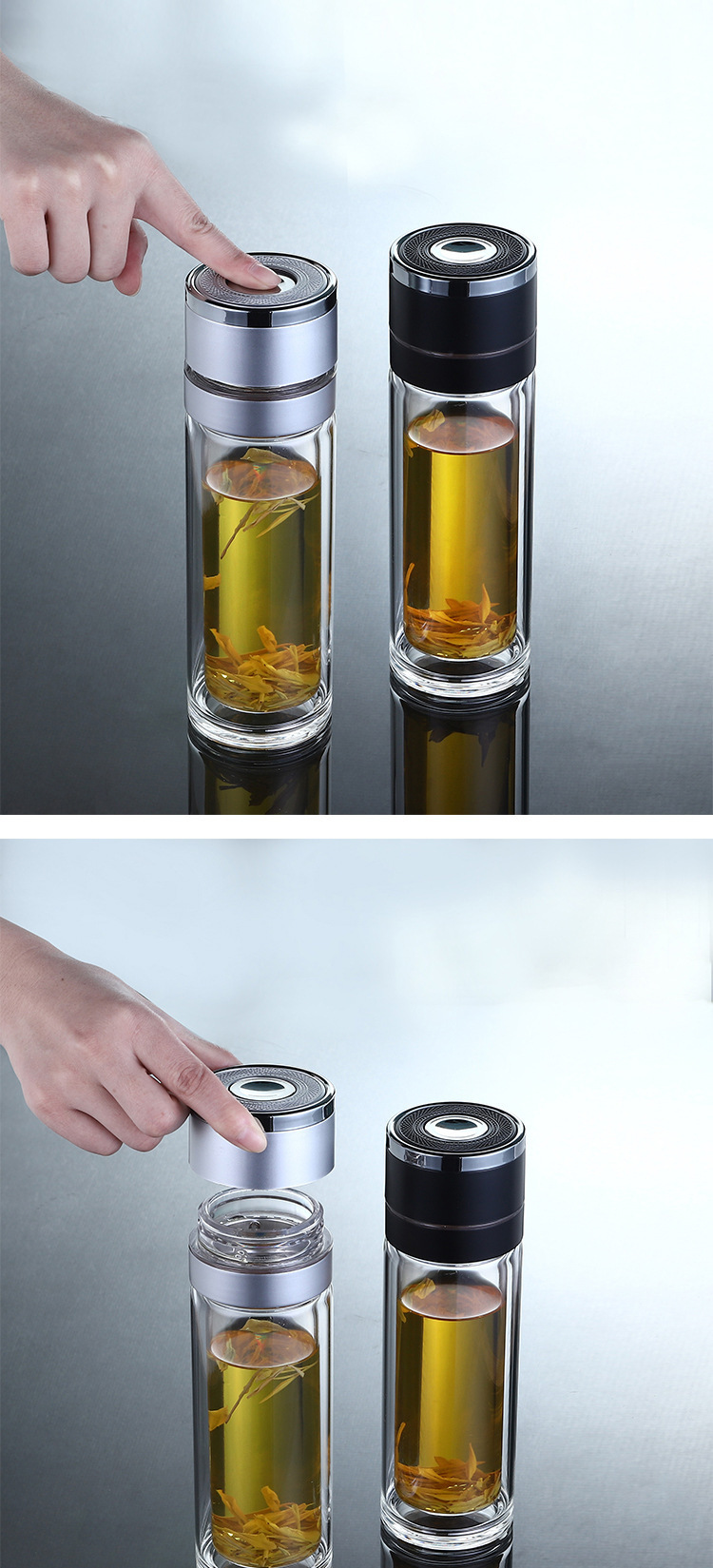 single cup one-click open lid double-layer borosilicate glass vacuum cup simple business cup anti-scald cup cover one piece dropshipping