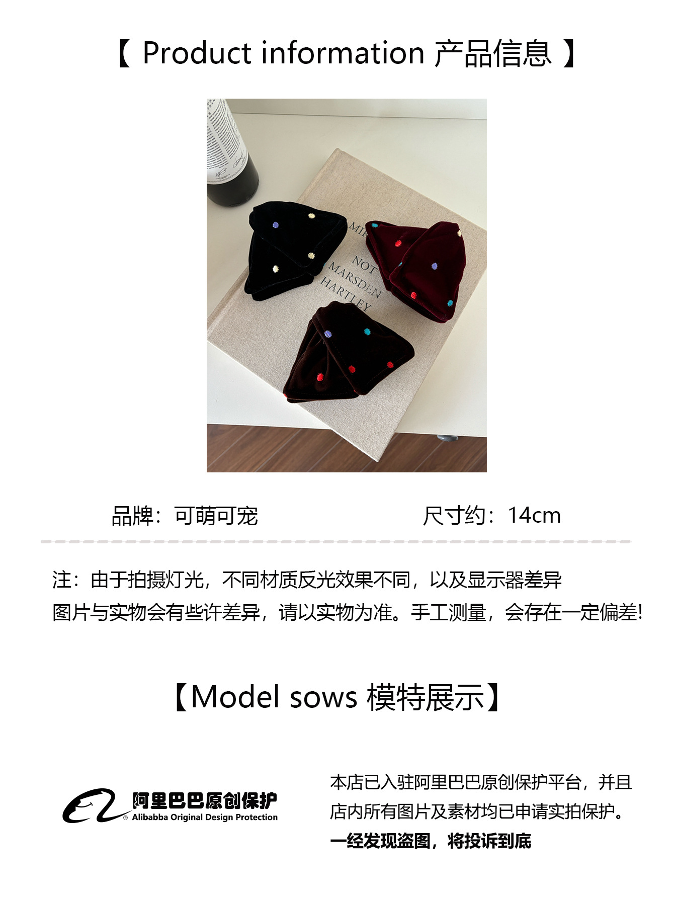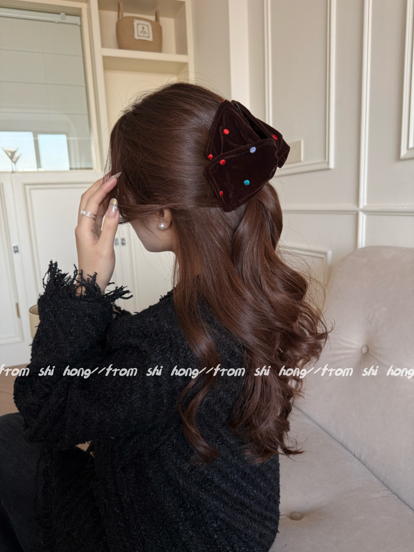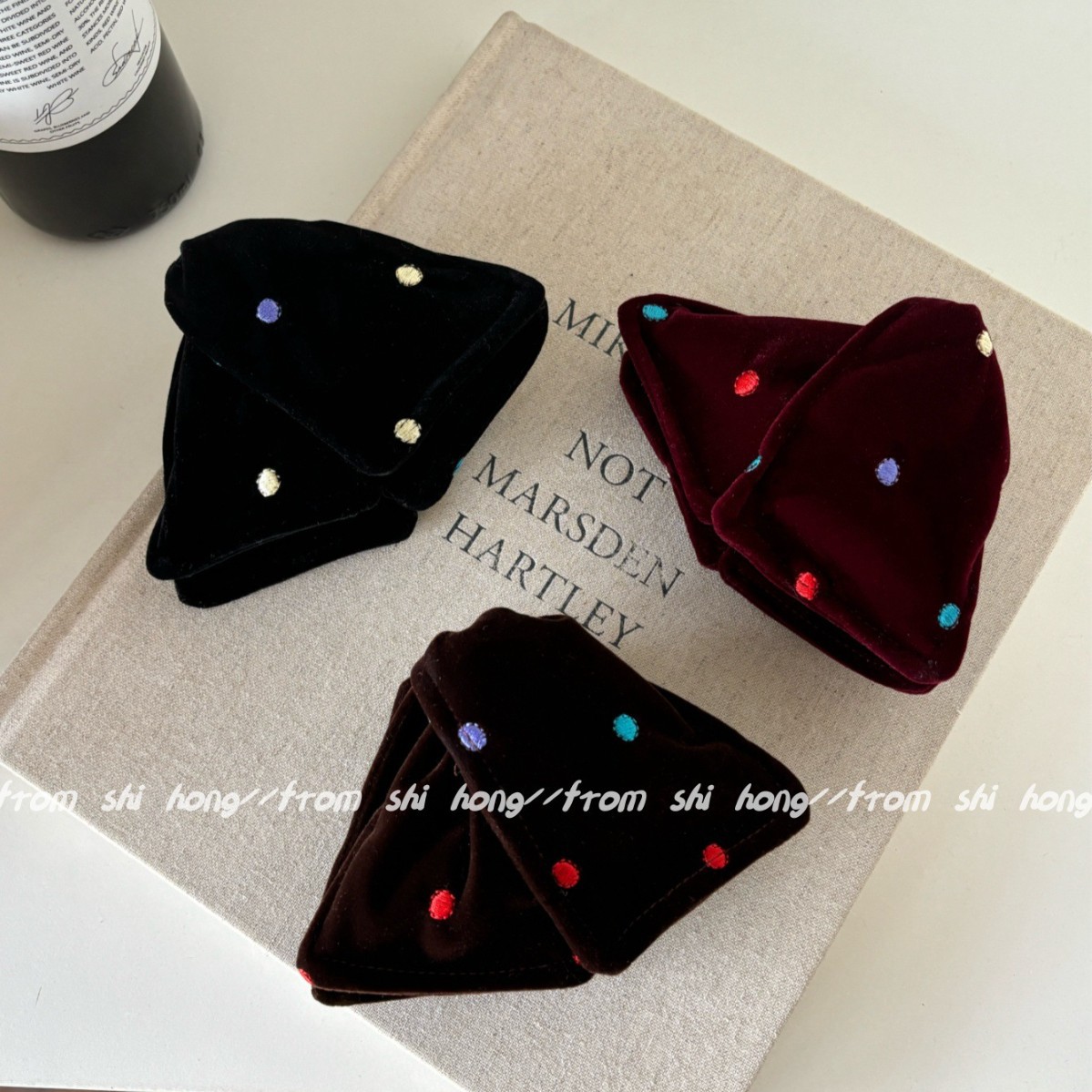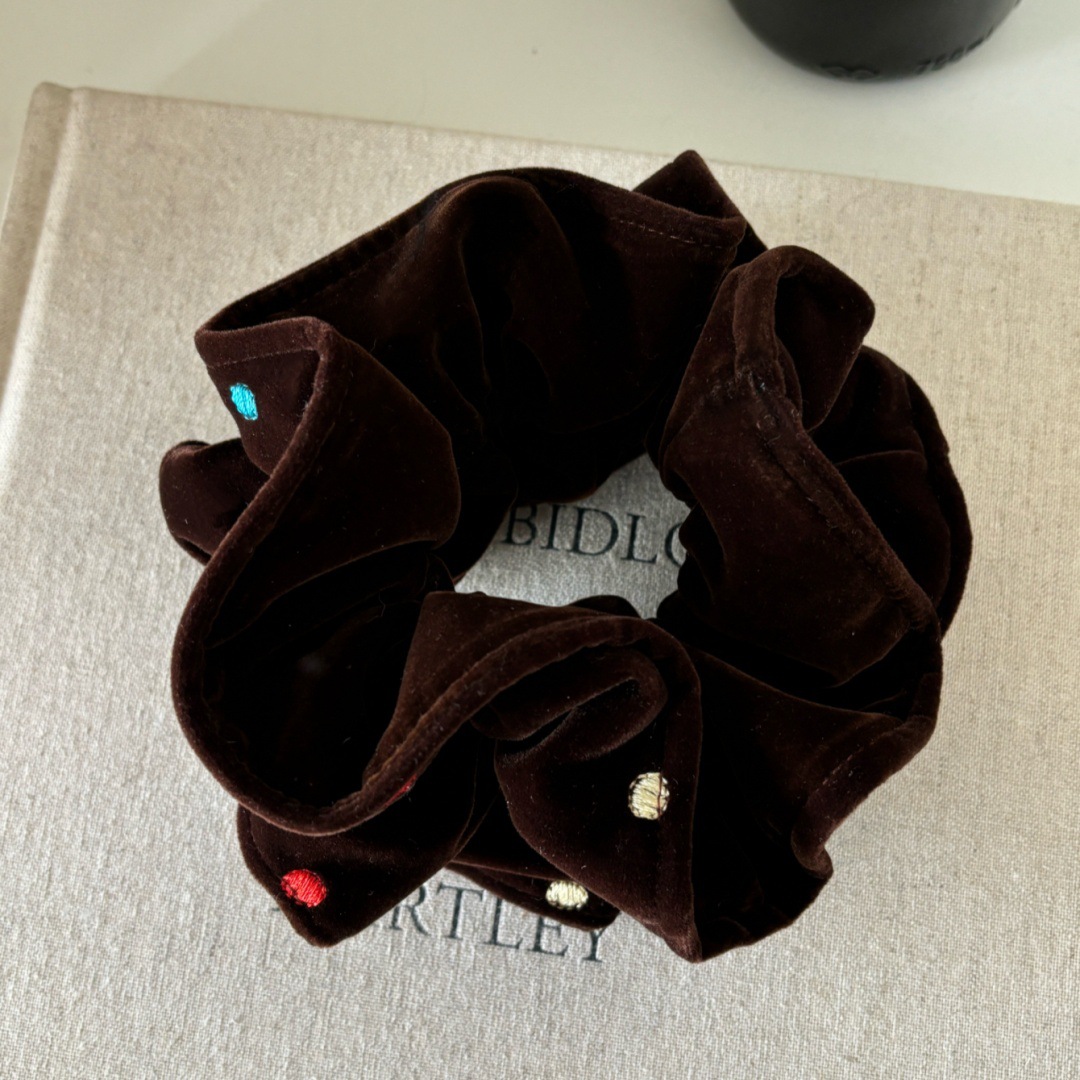 coffee color-velvet colorful polka dot hair tie (double layer)