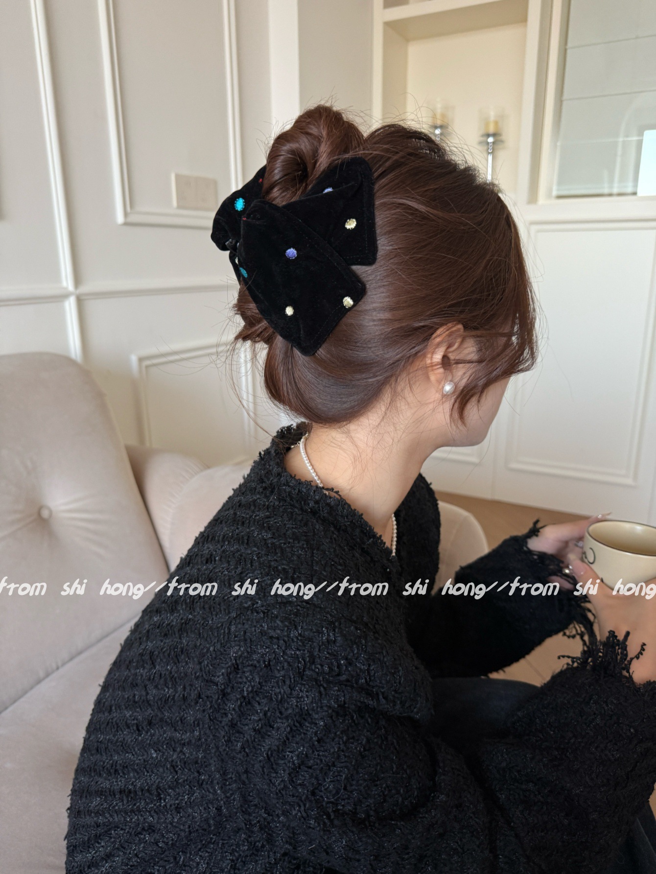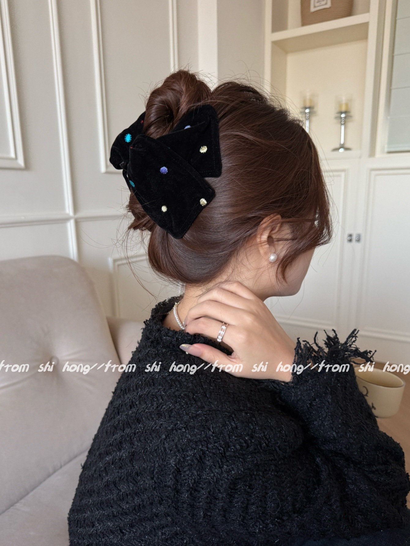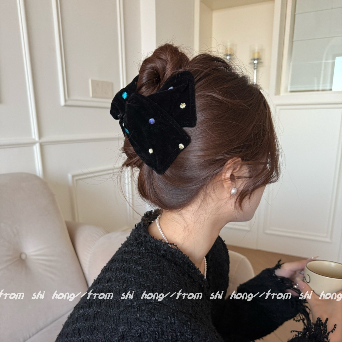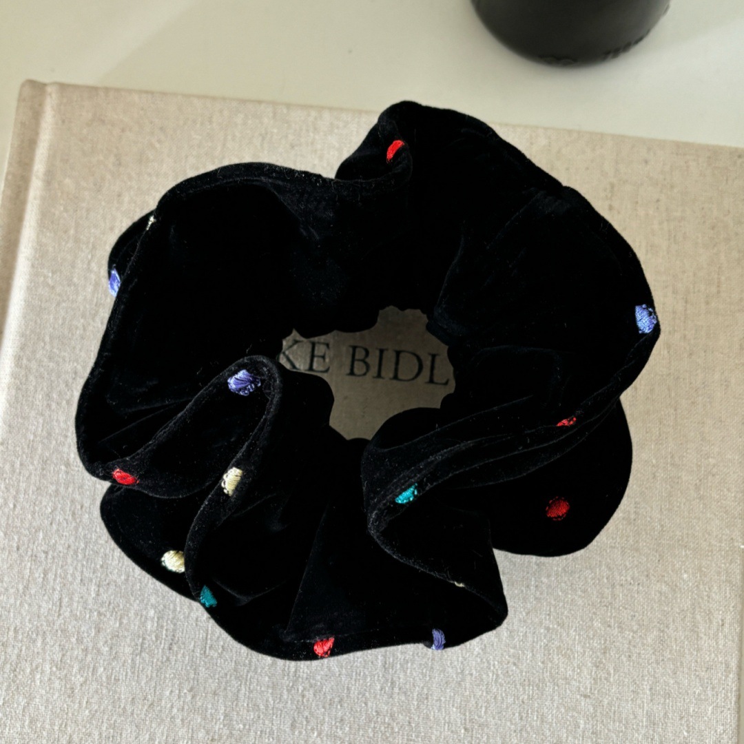 black velvet colorful polka dot hair tie (double layer)