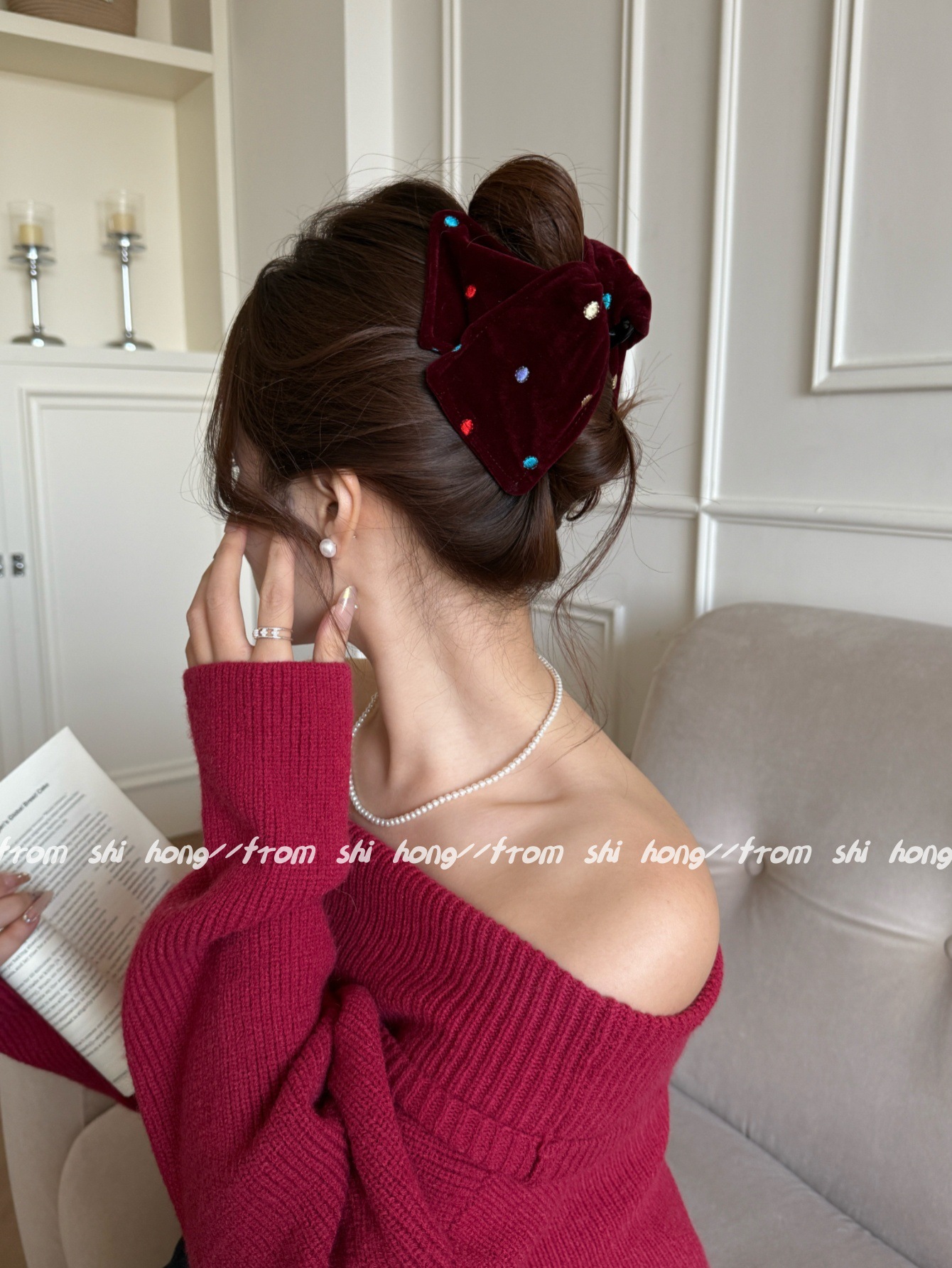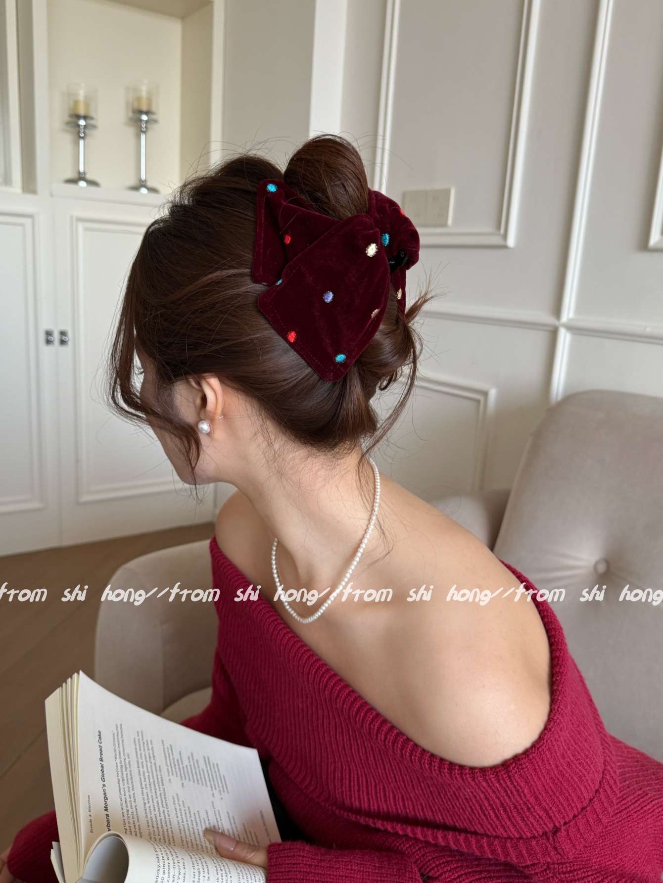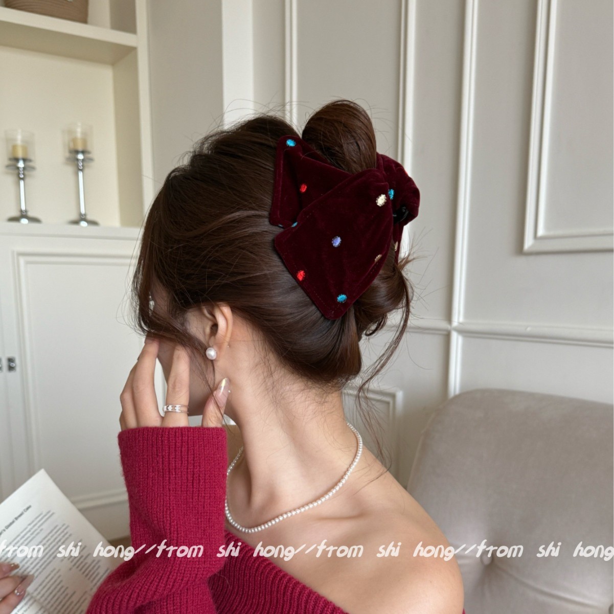 red velvet colorful polka dot hair tie (double layer)